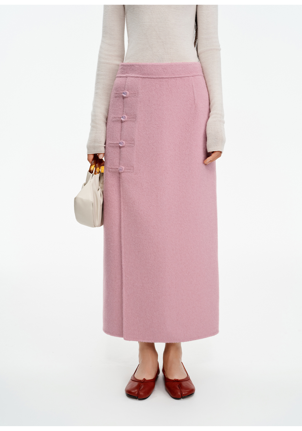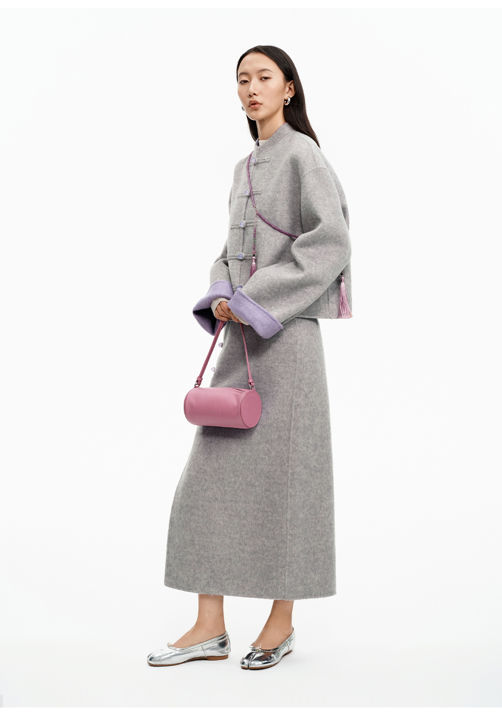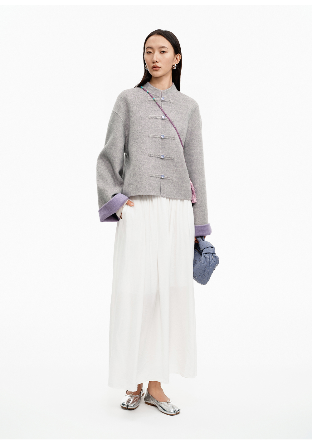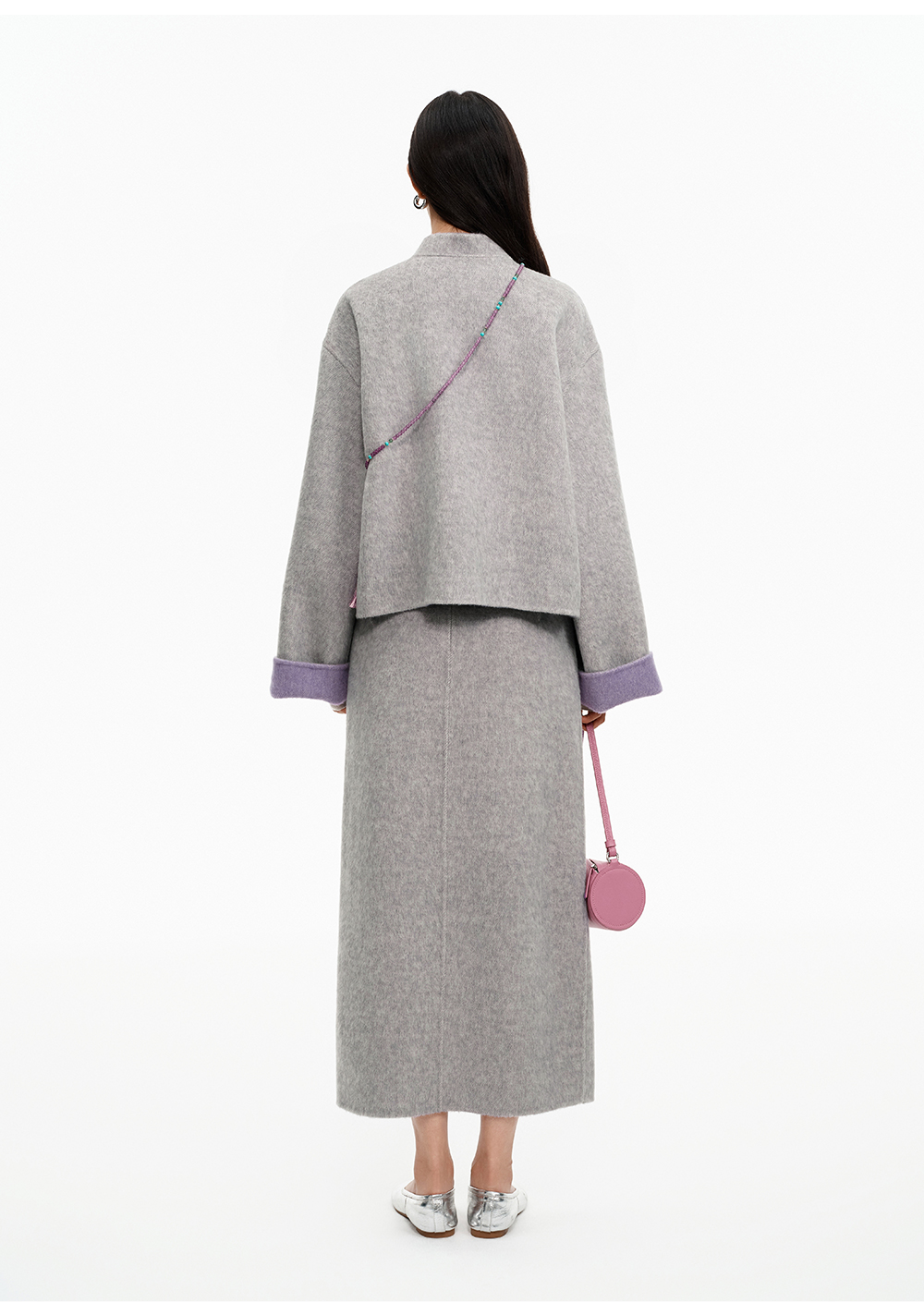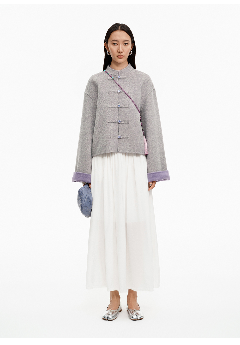 SELFWHO70支绵羊毛新中式盘扣双面呢外套女2025冬季新款撞色上衣