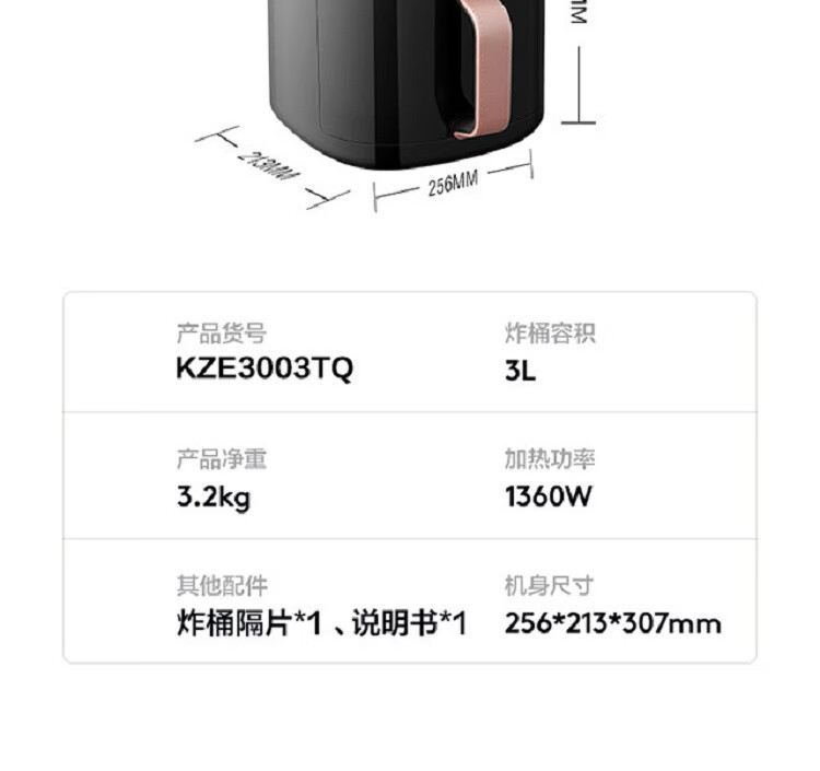 美的 空气炸锅 家用大容量3L KZE3003TQ