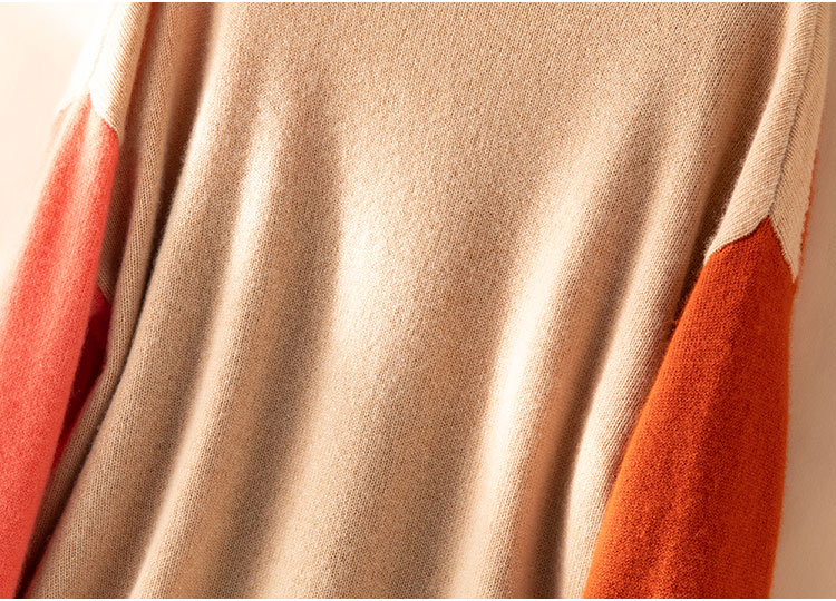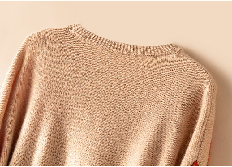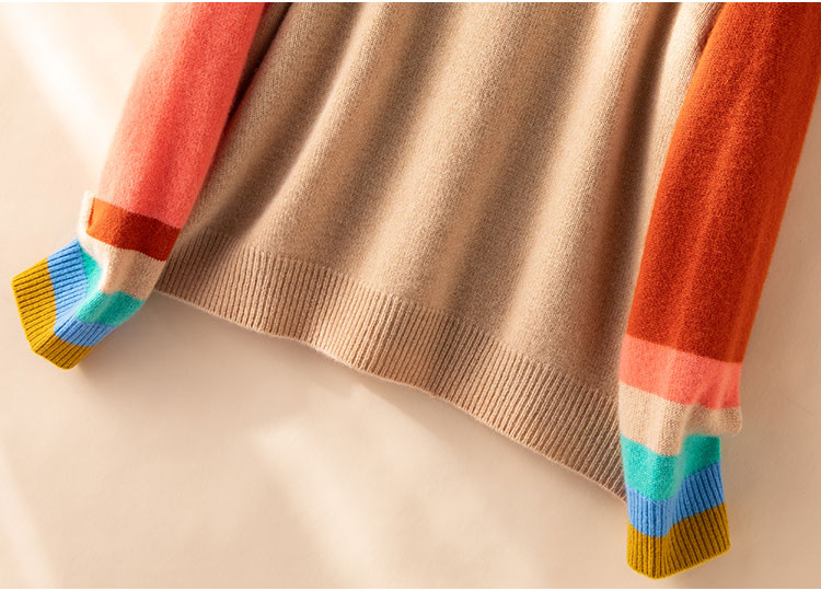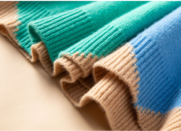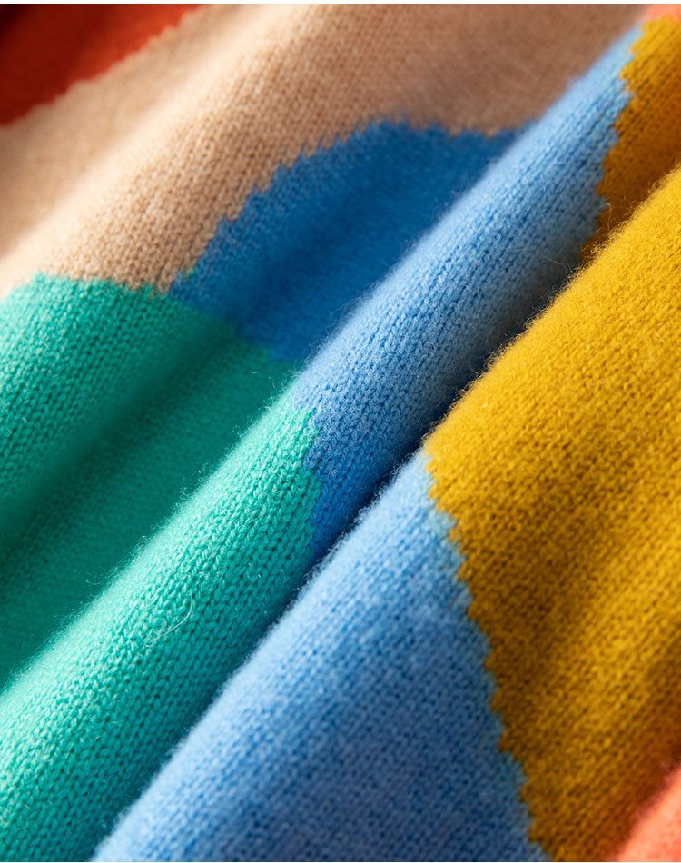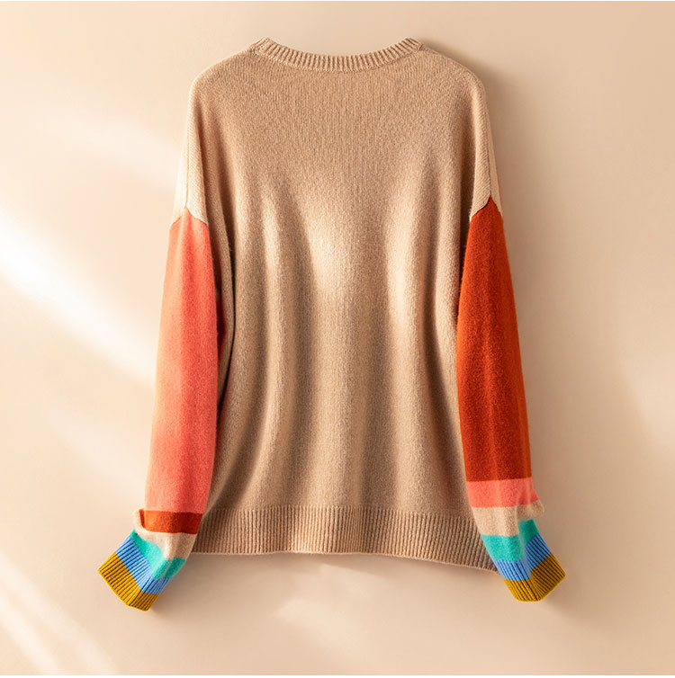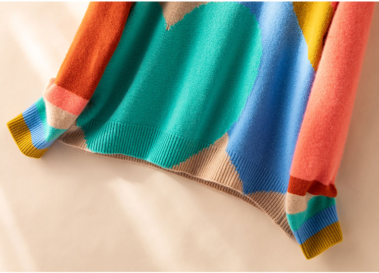 多巴胺配色~100纯山羊绒衫女时尚拼色提花圆领套头长袖上衣