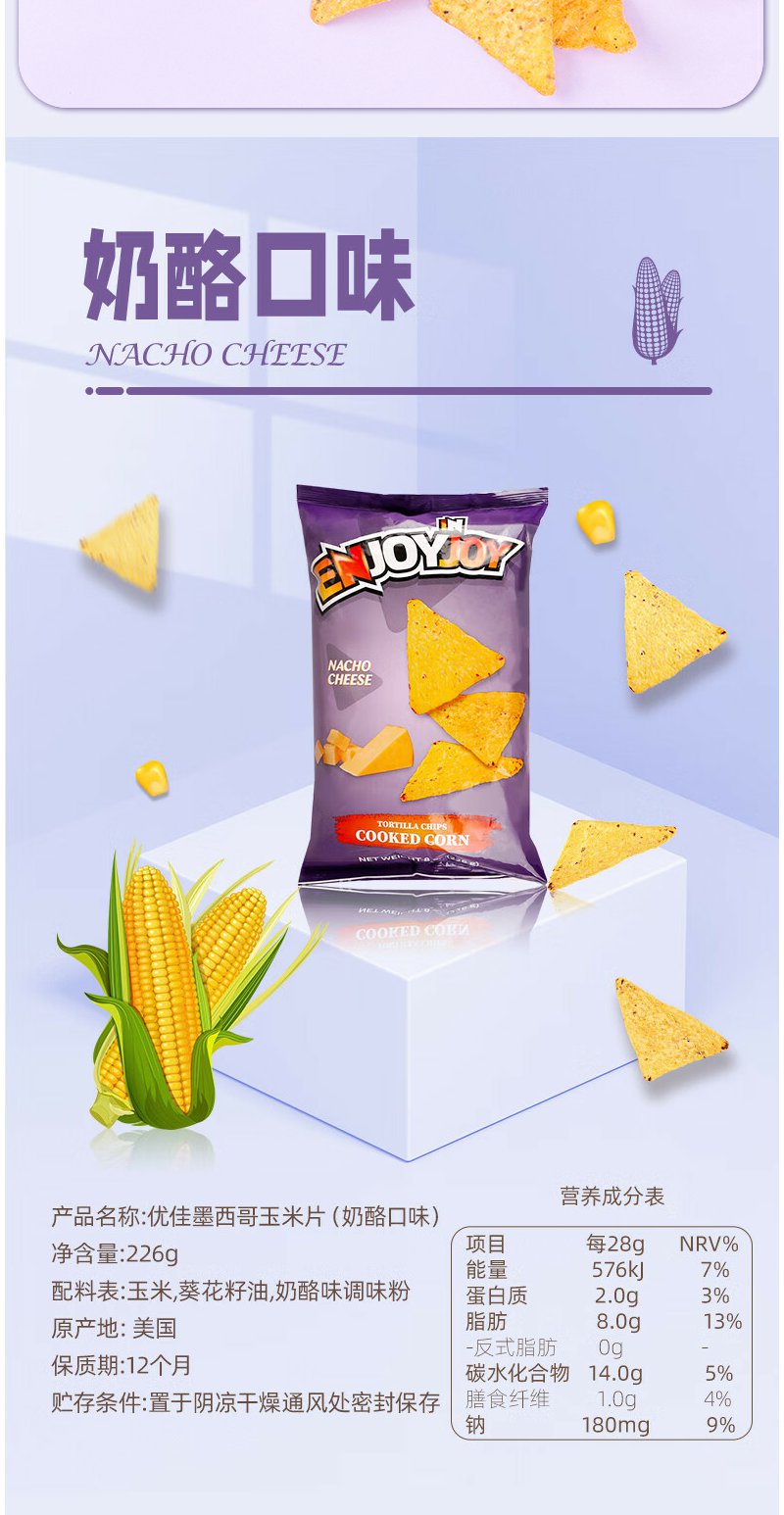 优佳 玉米片 粗粮膨化小吃 226g*2袋装