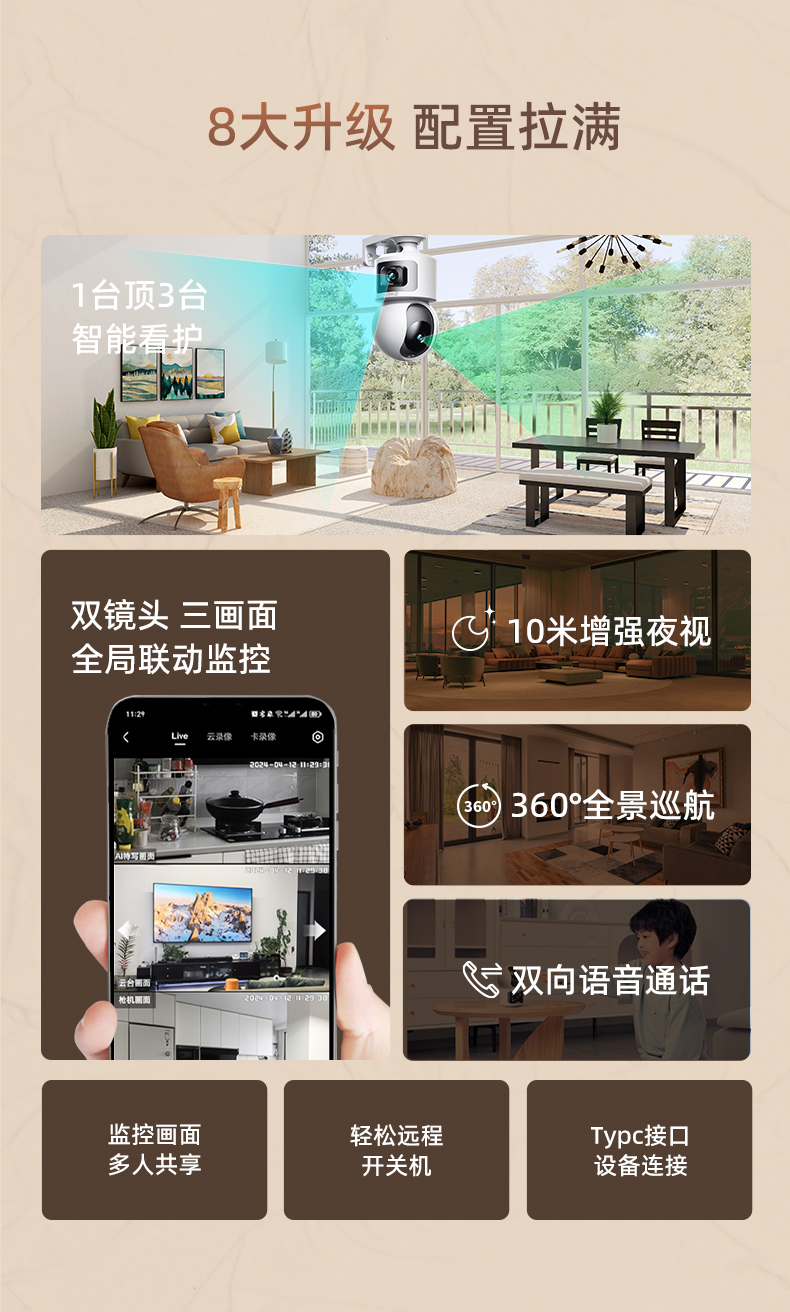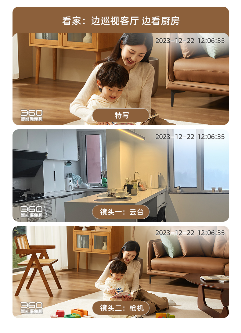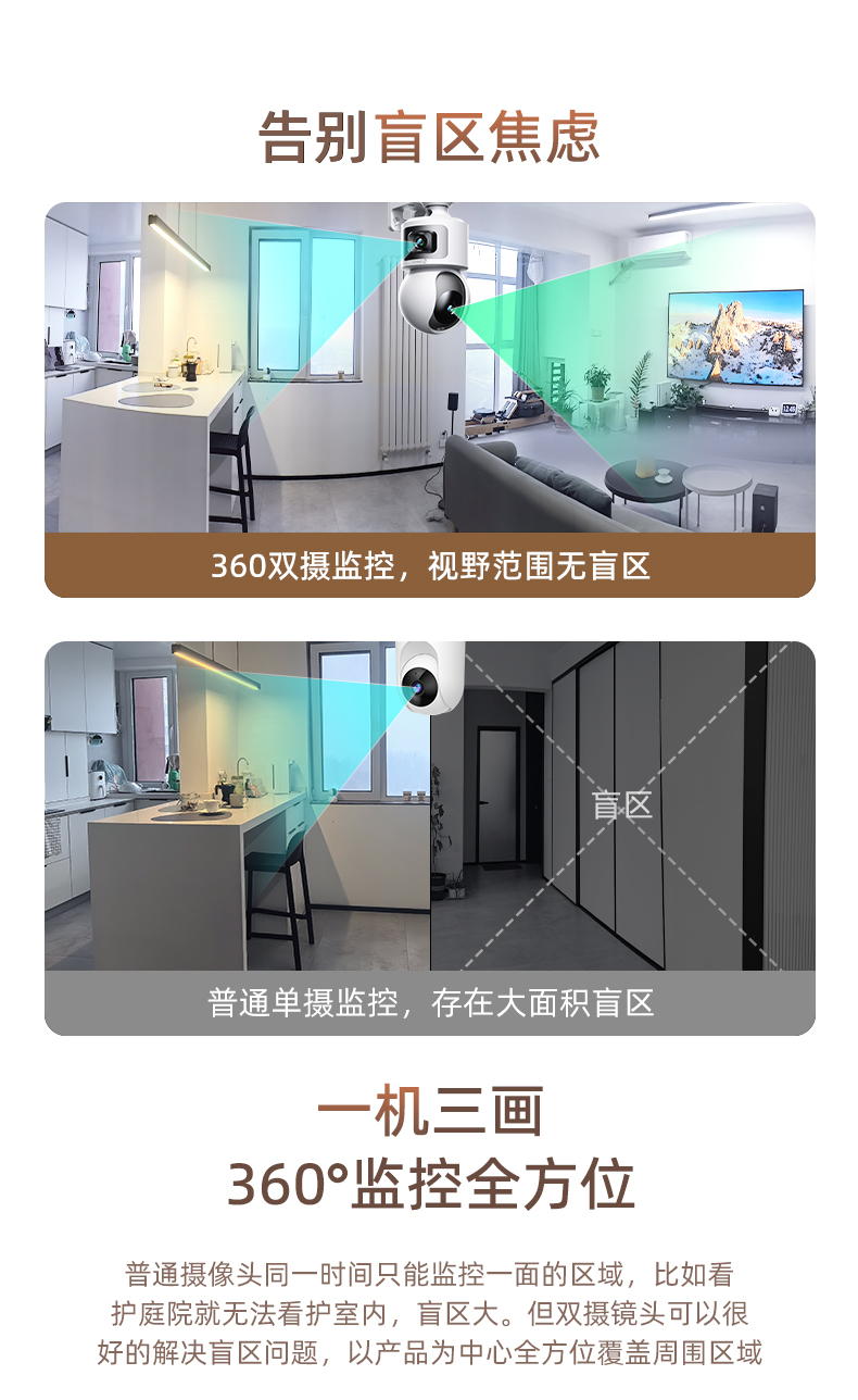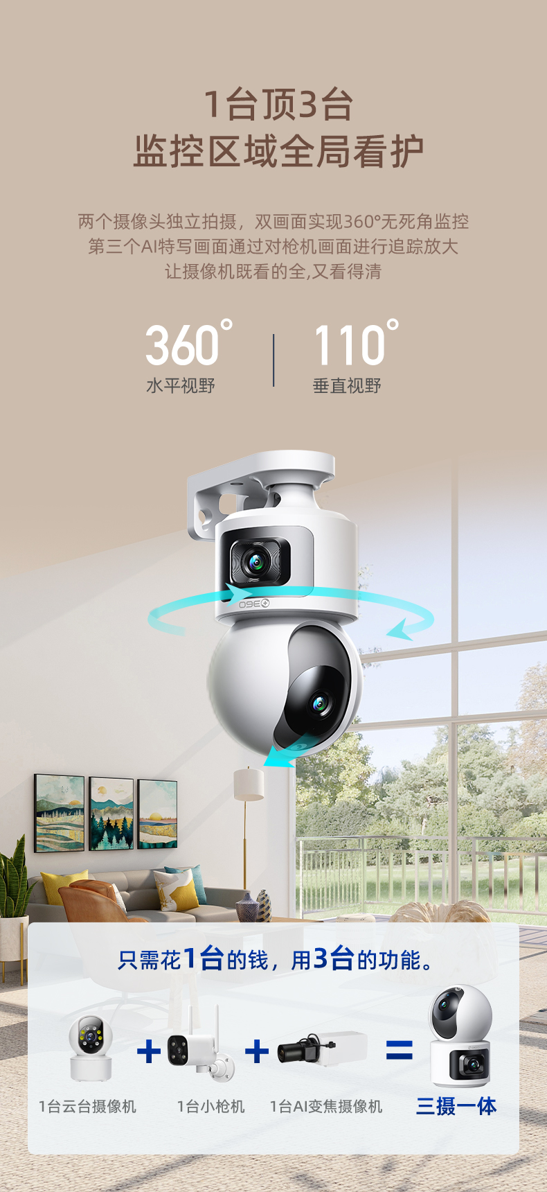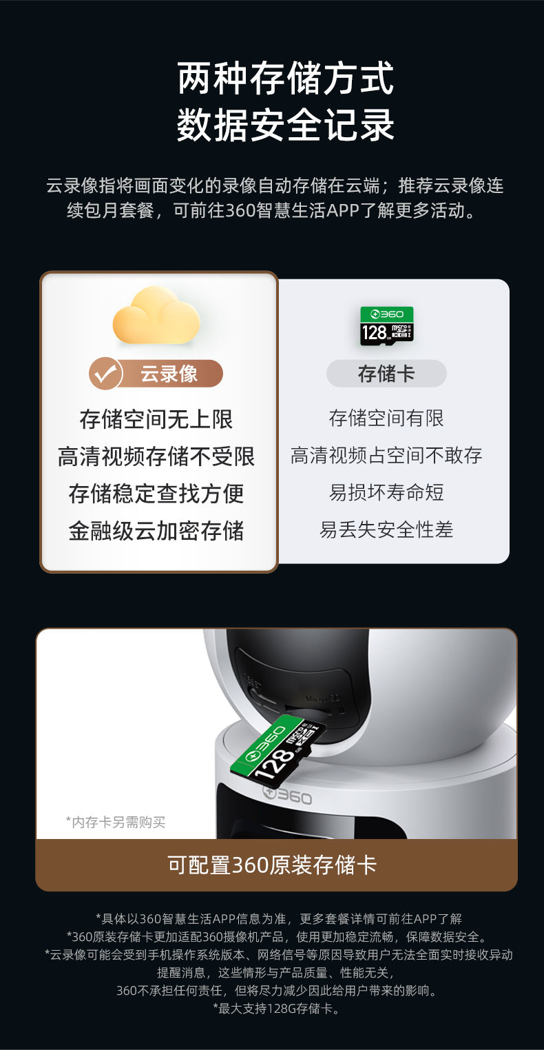 【超值】360智能摄像机D2 Pro双摄版 双200万镜头 微光夜视 移动侦测 360度全景画面
