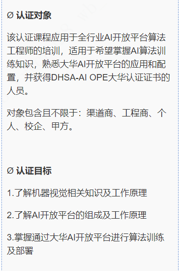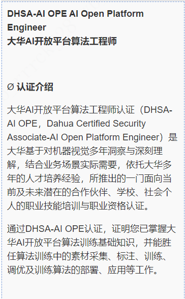 DHSA-AI OPE大华AI开放平台算法工程师认证考试服务