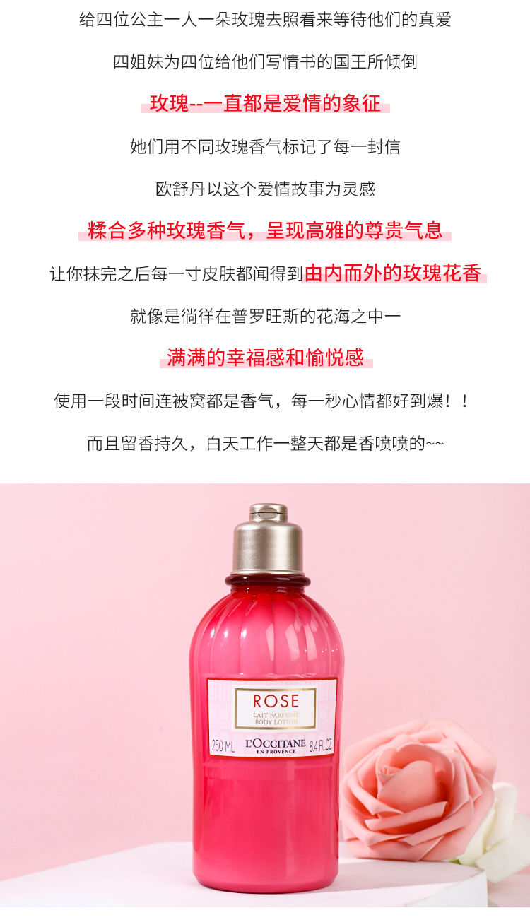 欧舒丹玫瑰之心身体乳250ml 润肤乳香体乳留香持久滋润保湿
