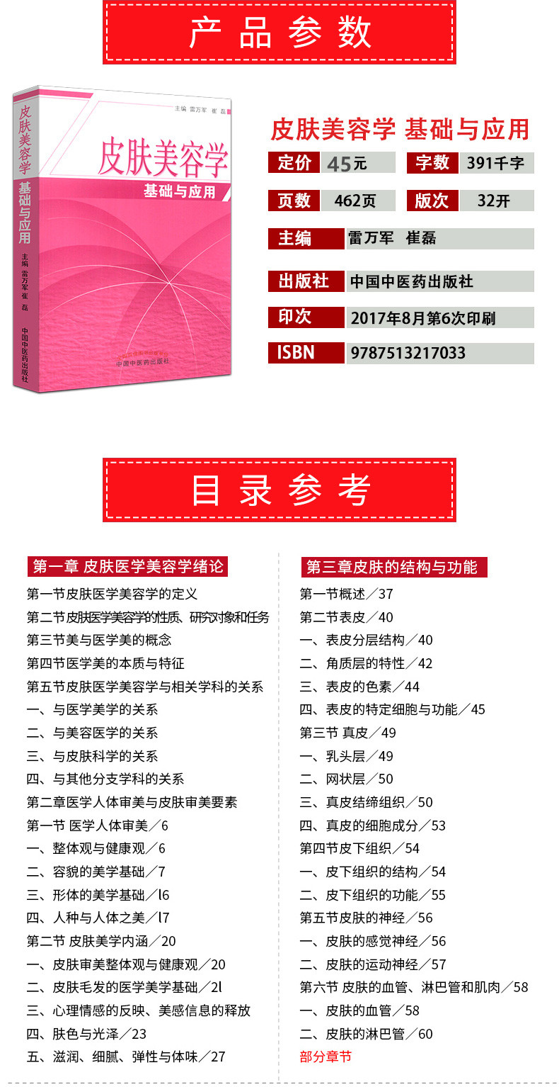 皮肤美容学基础与应用 基础知识皮肤与养护美容护肤原则学习知识有关于如何护肤的书籍 中国中医药出版社