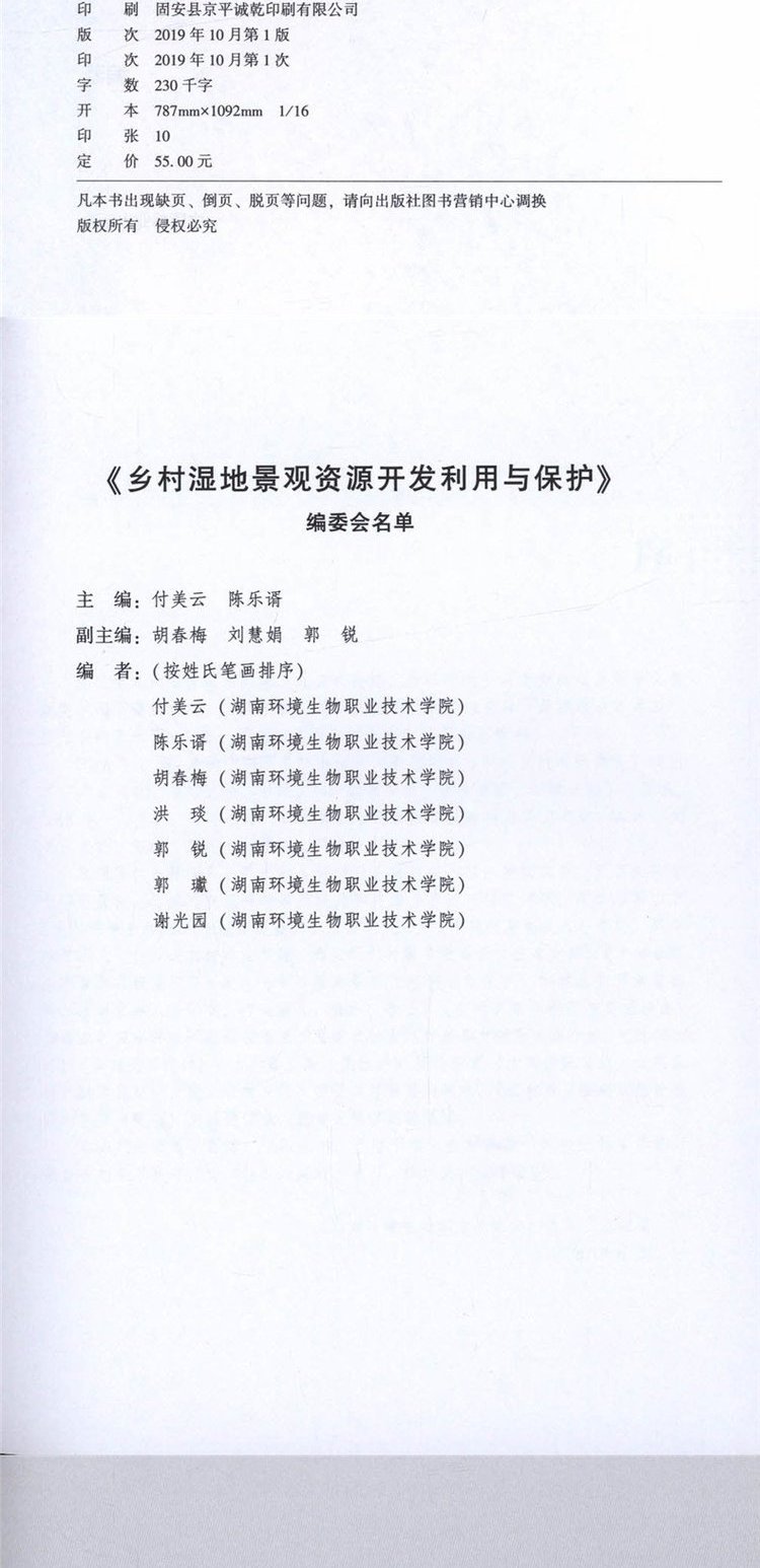 乡村湿地景观资源开发利用与保护 0112 乡村振兴系列丛书 教材 中国林业出版社