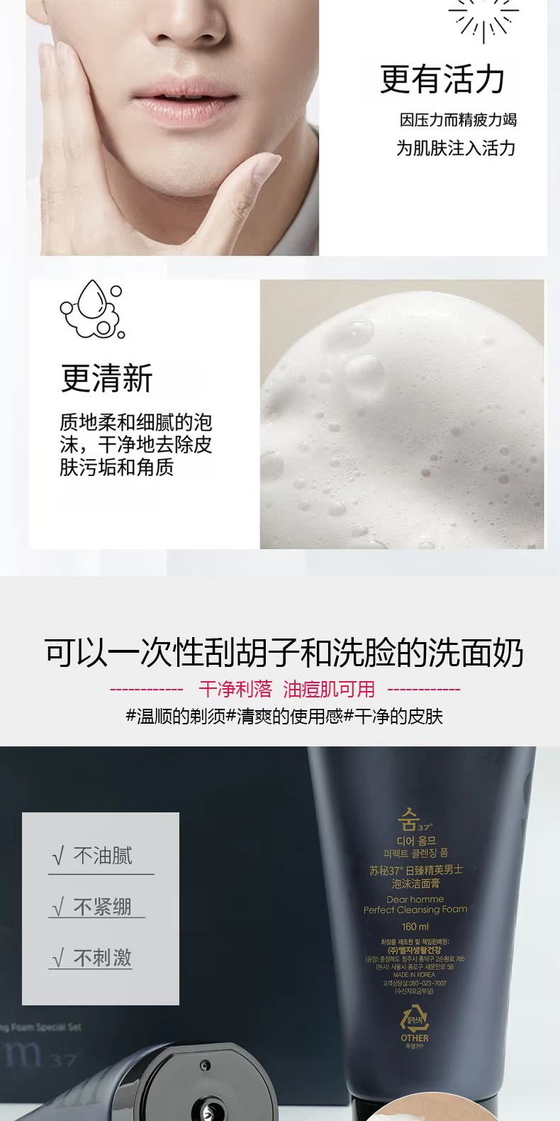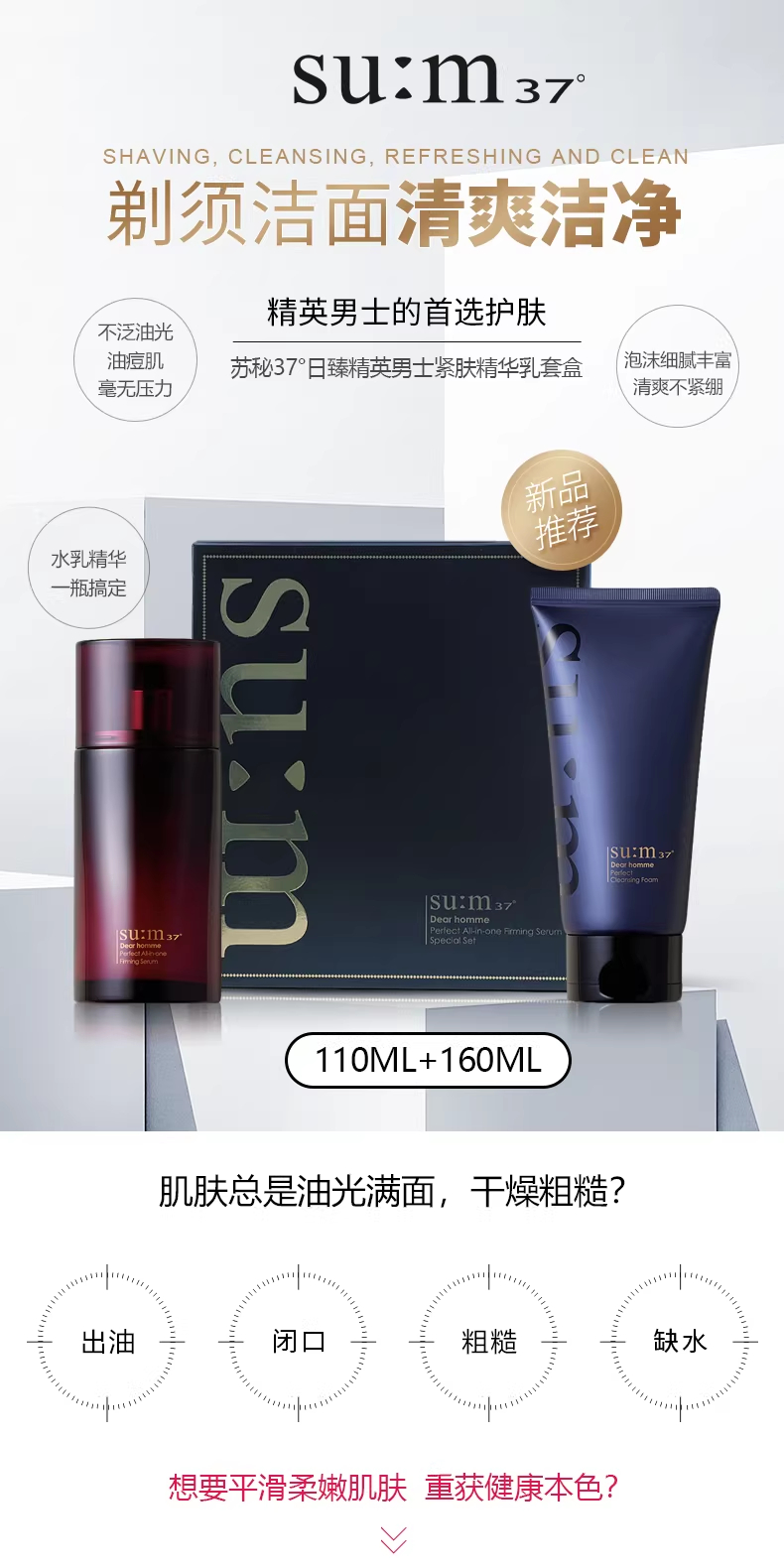 SU:M苏秘日臻男士三合一精华洁面套(精华乳110ml+洁面160ml)