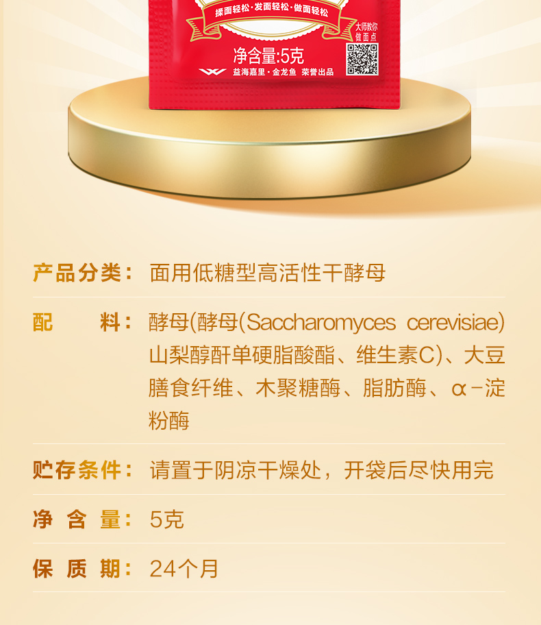 金龙鱼轻松发低糖高活性干酵母5G*10