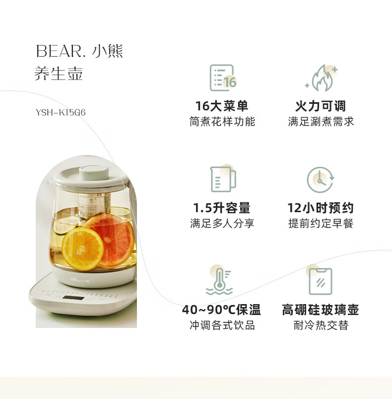 【仅供集采】小熊(Bear)养生壶 YSH-K15G6