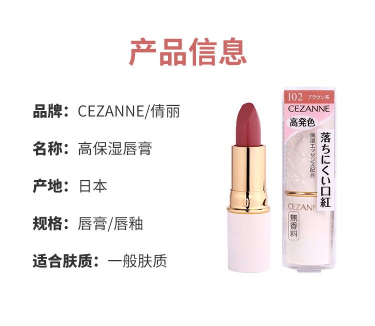 【保税仓】Cezanne倩丽 白管哑光唇膏 402