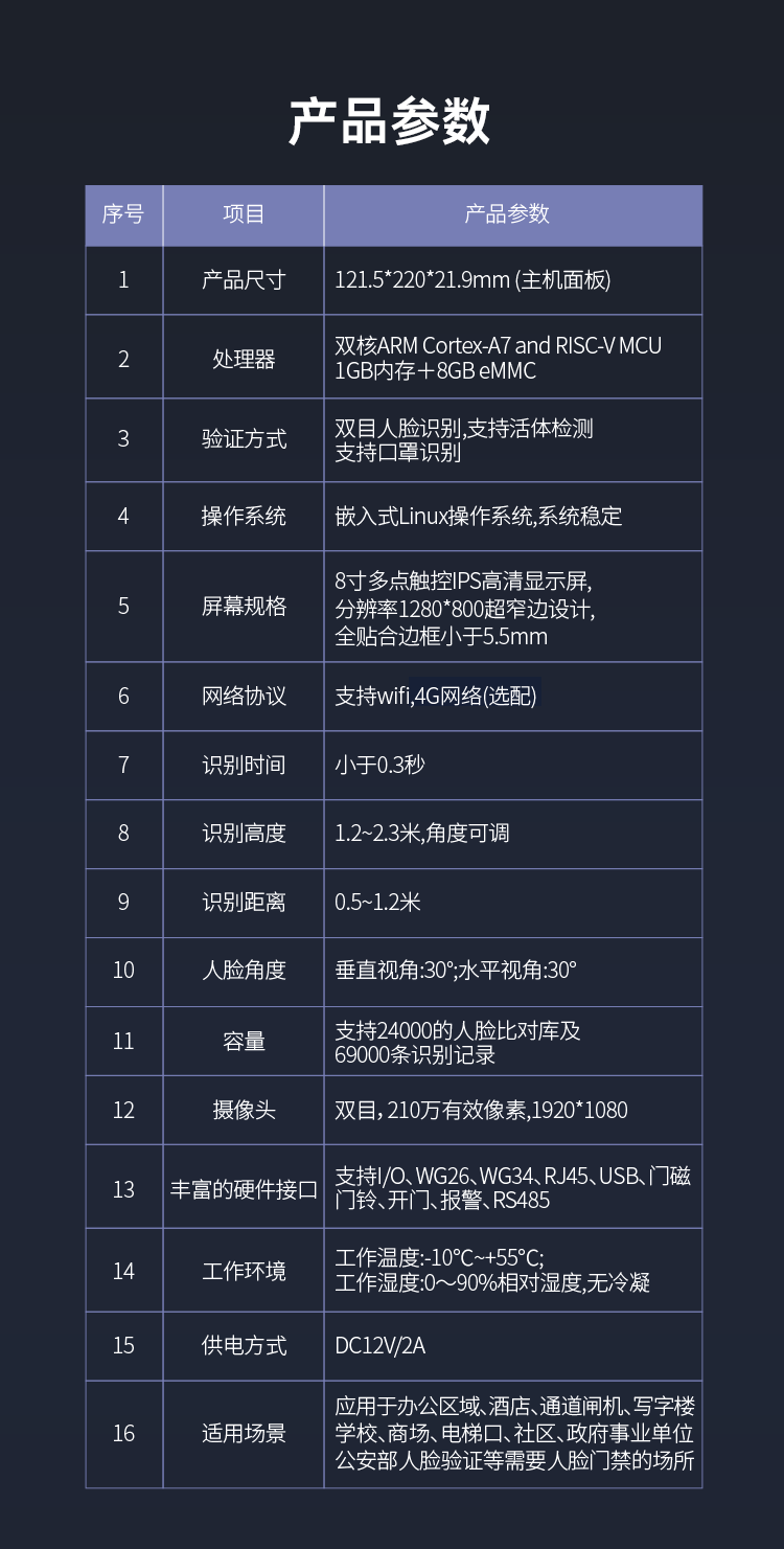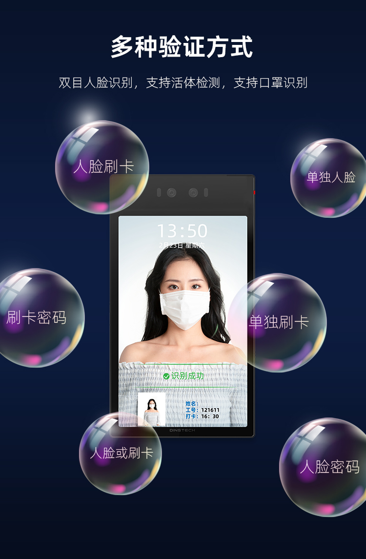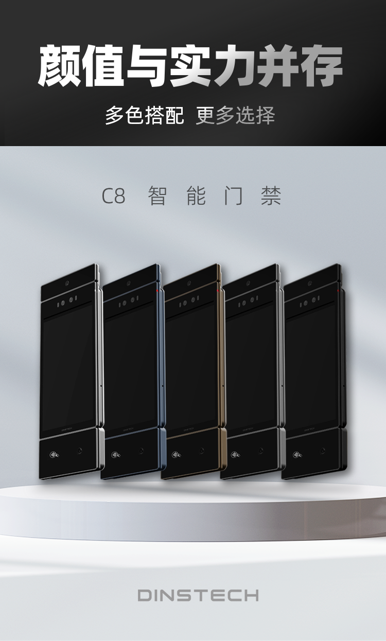 鼎山科技(DINSTECH) 智能门禁考勤机C8 双目活检 人脸识别 刷卡密码验证 单机离线管理