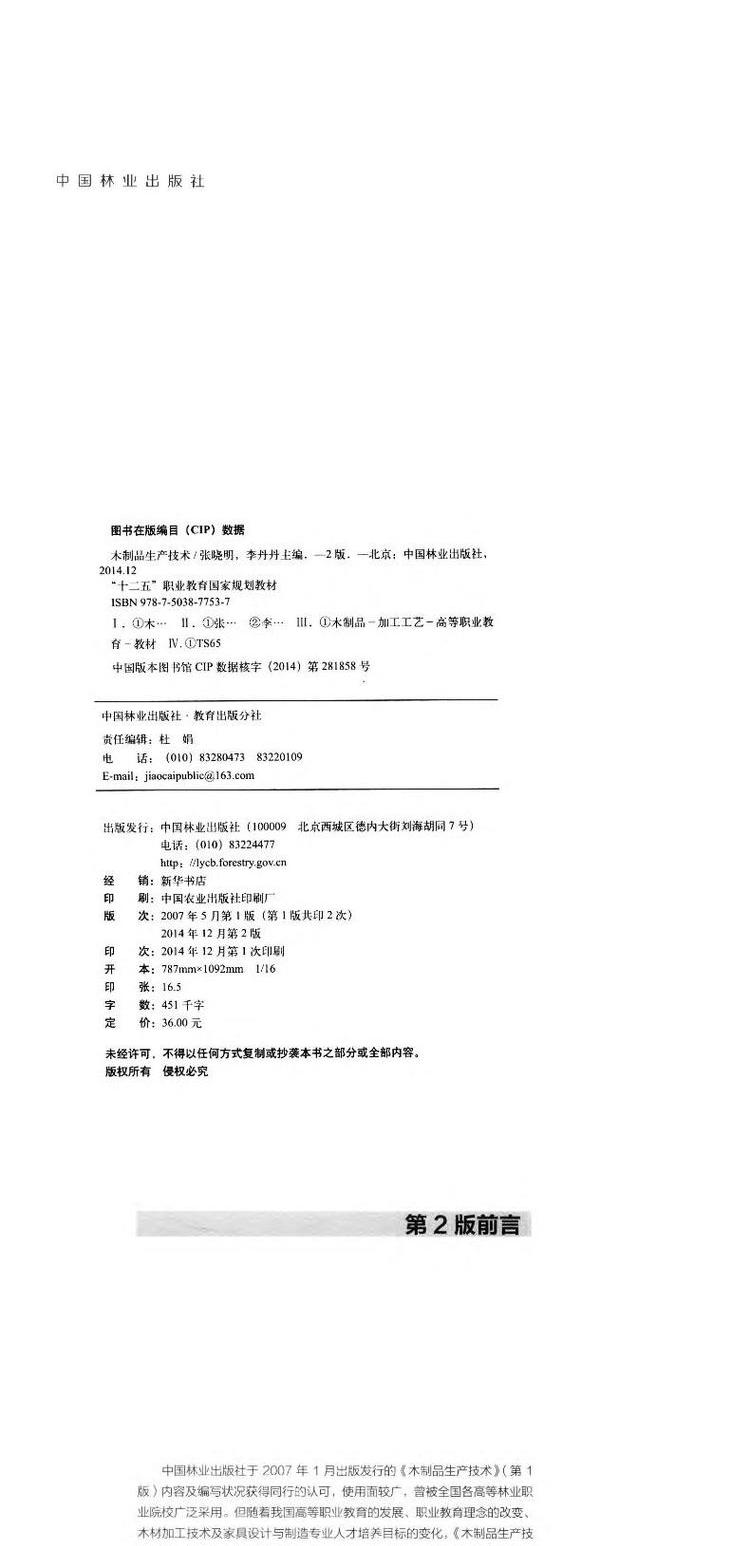 木制品生产技术 7753 十二五职业教育国家规划教材 中国林业出版社 正版畅销书