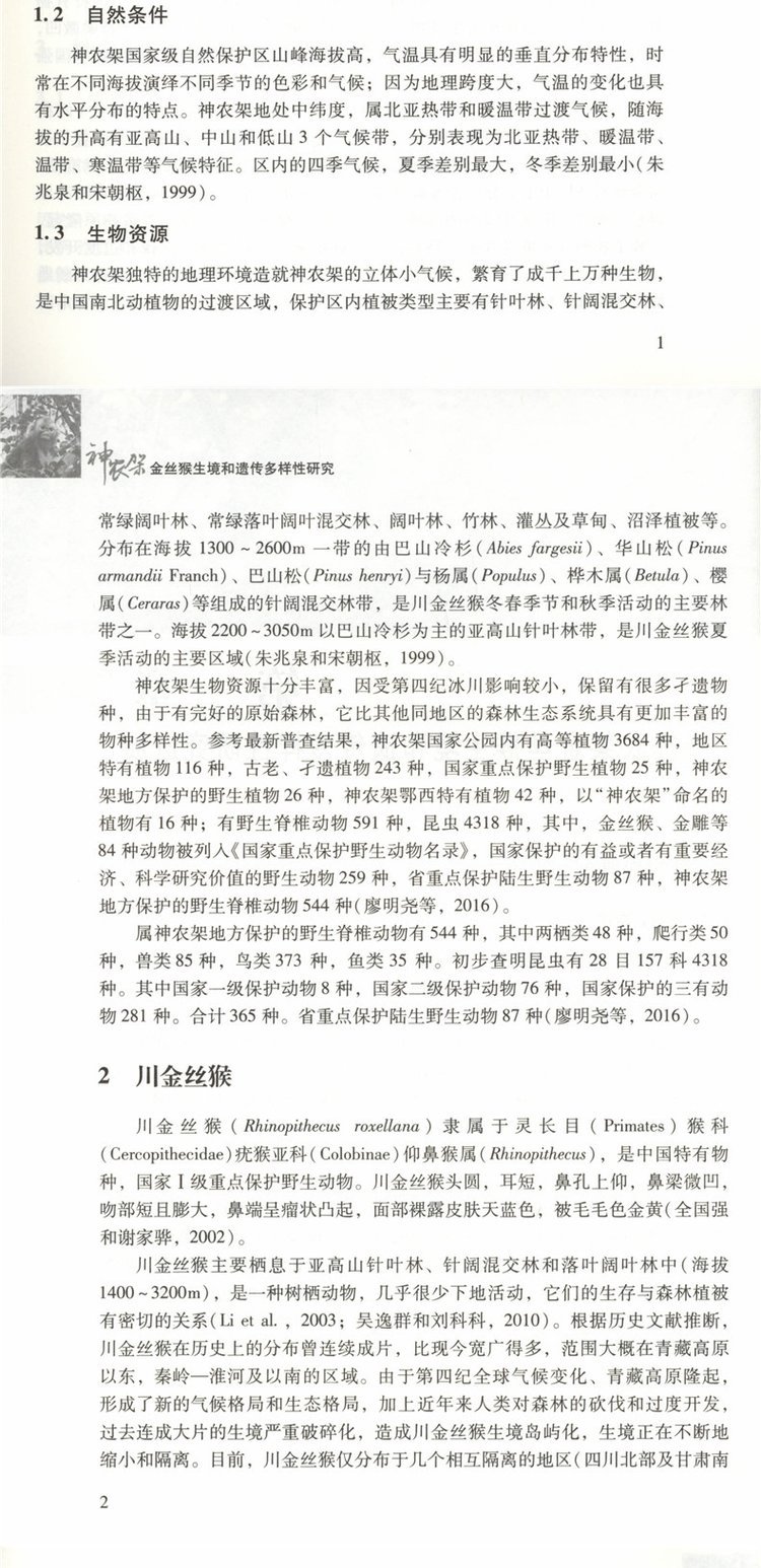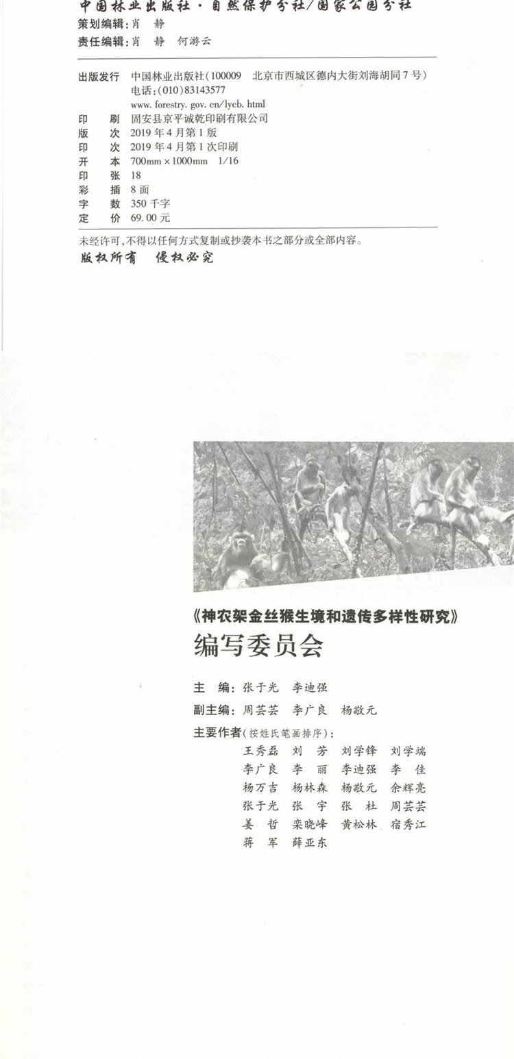 神农架金丝猴生境和遗传多样性研究 9969 自然植被分布 繁育群体的建立与保护 科普读物 中国林业出版社