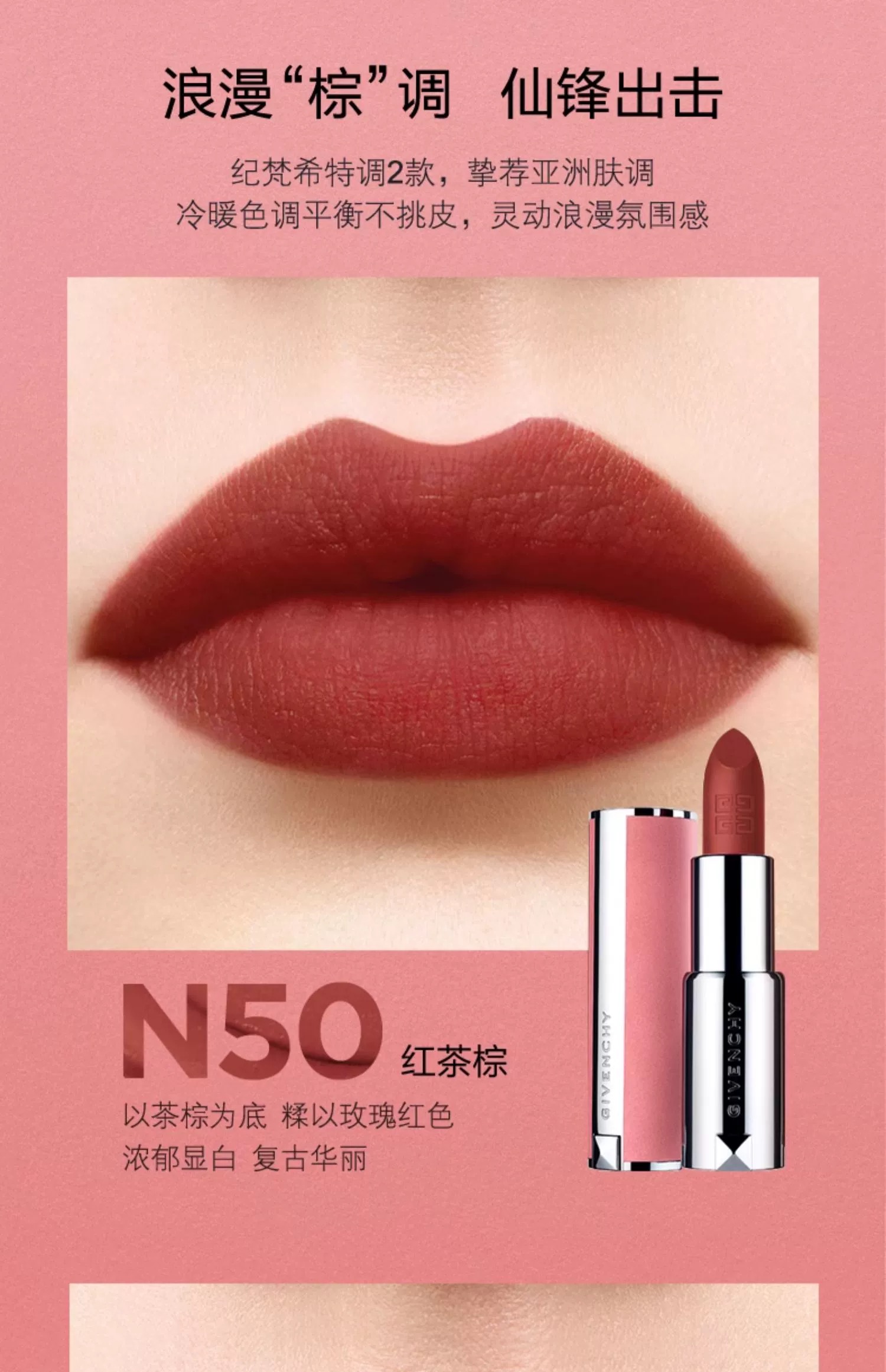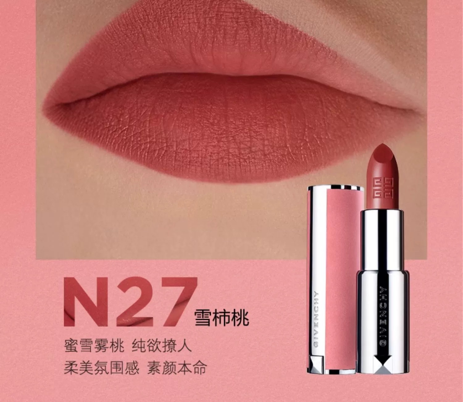 纪梵希高定香榭粉丝绒唇膏N27雪柿桃 3.4g