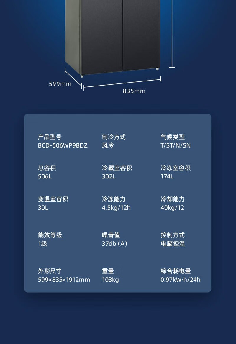 美菱冰箱 BCD-507WP9BTZ【599mm零嵌】丝蕴灰/盐湖白