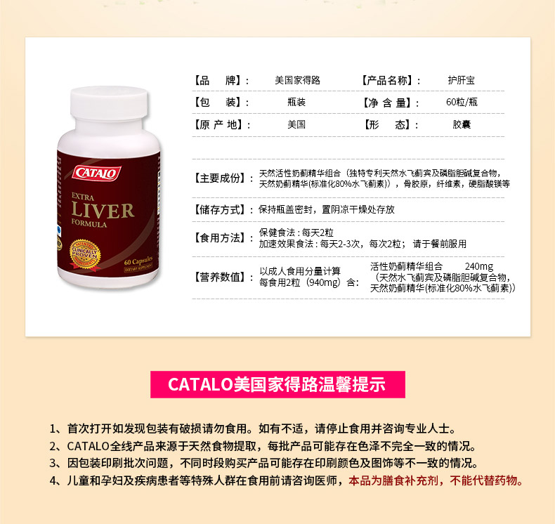 Catalo 家得路 特强护肝宝 进口解酒胶囊 60片【有效期:2026年12月】