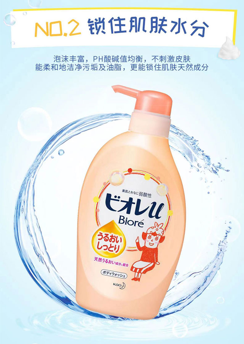 【保税仓】Biore碧柔滋润保湿沐浴露白桃味替换装340ml/袋