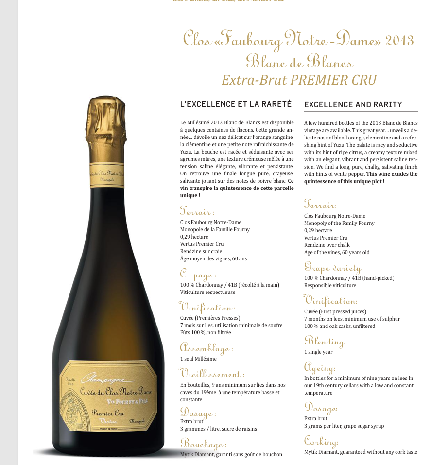 2013 Veuve Fournu & Fils Clos Faubourg du Notre-Dame Brut Blanc de Blancs 1er 芙妮香槟圣母园年份香槟独占一级园(礼盒装)