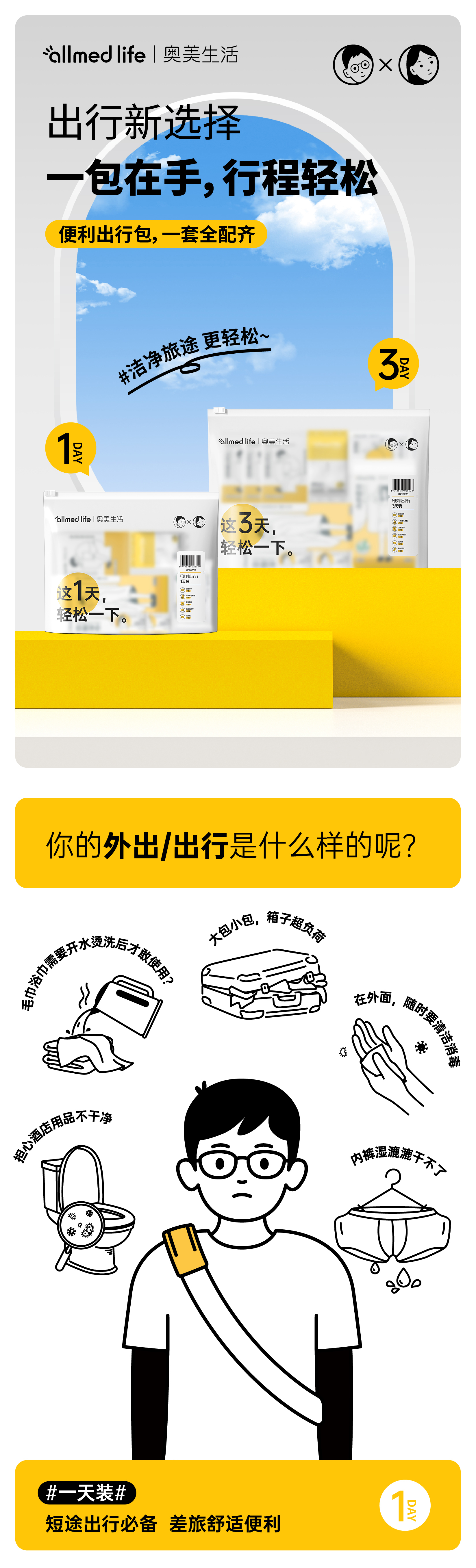 优选丨奥美生活 便利出行1天装 便携出行包旅行酒店用品 便利出行包,一套配齐,让旅途更轻松