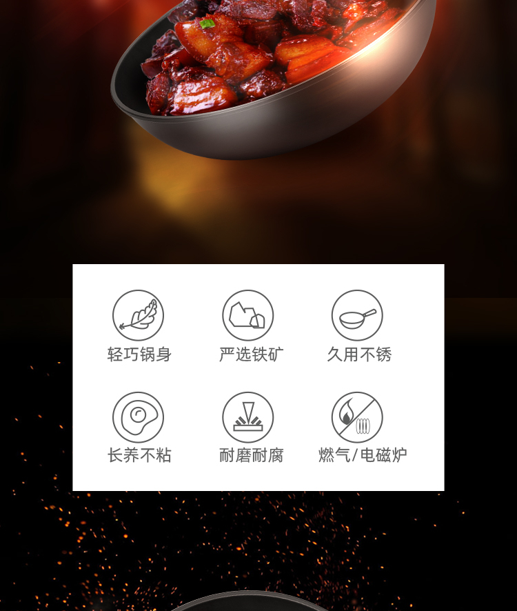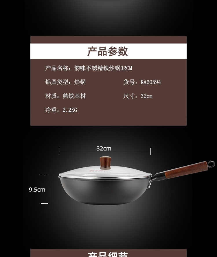 炊大皇 韵味不锈精铁炒锅 32CM KA60594