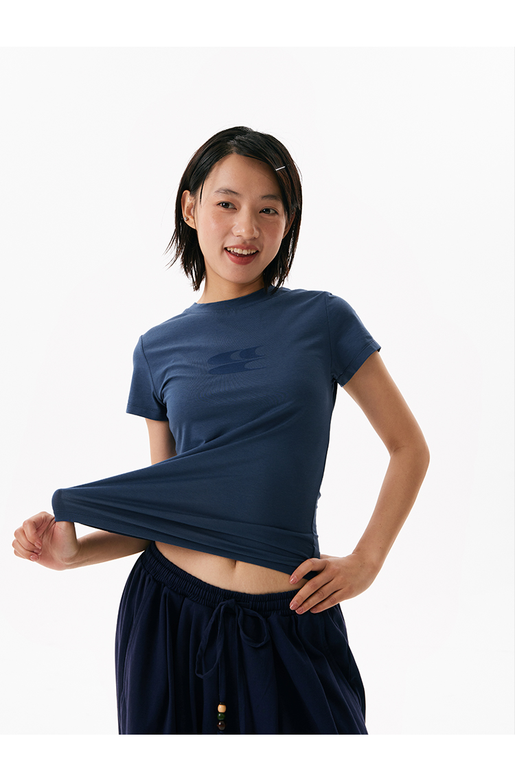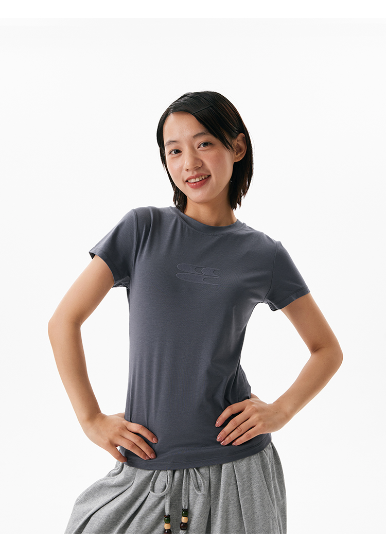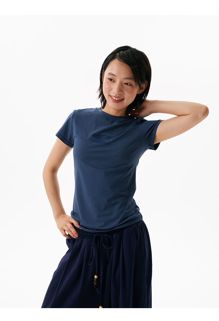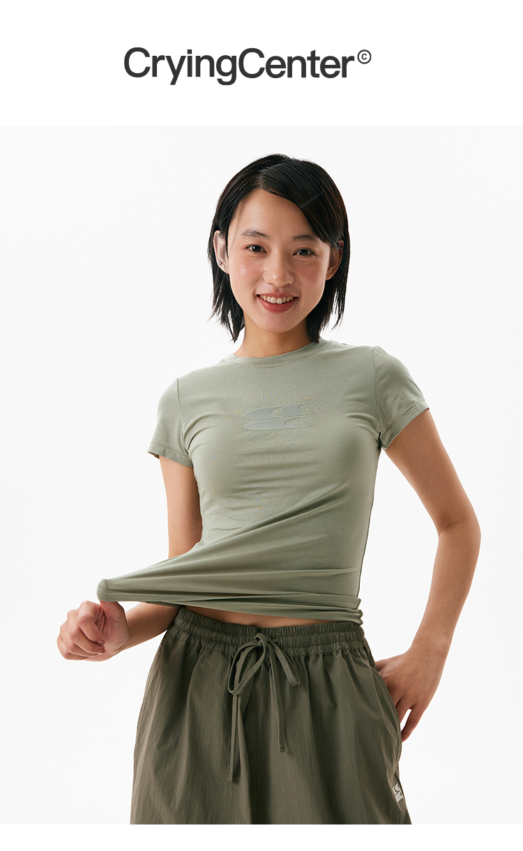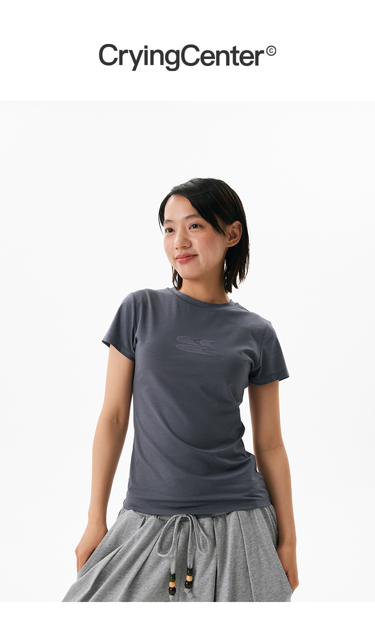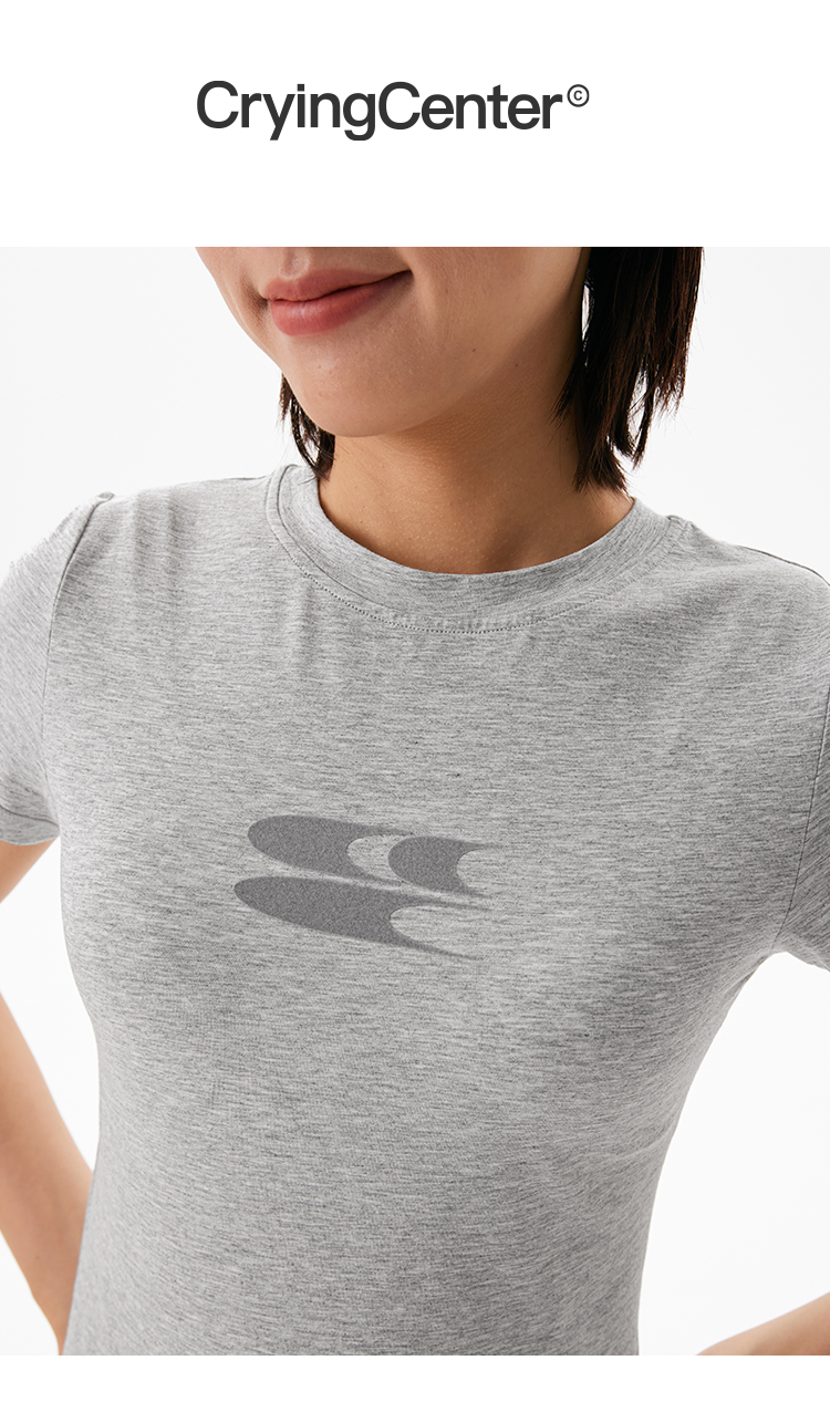 CryingCenter凉感系列圆领小logo健身短袖上衣正肩速干蓝鲸莫代尔