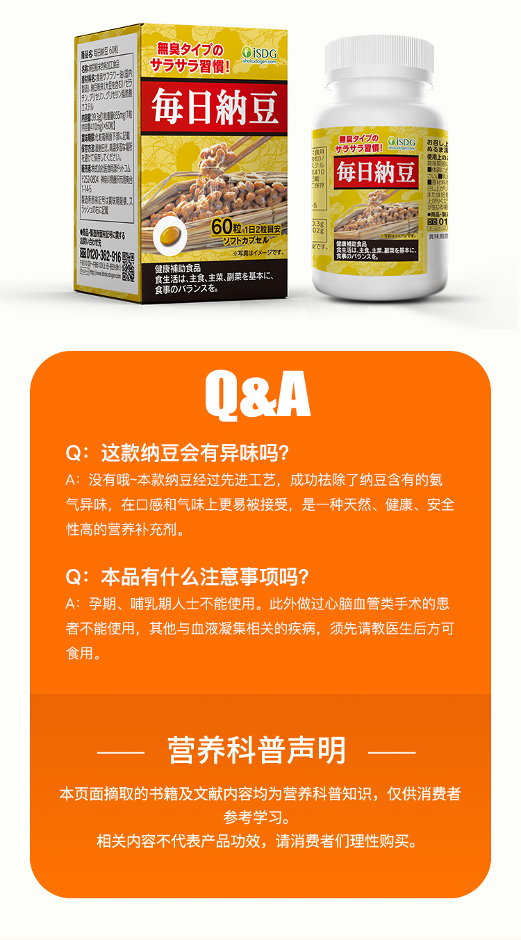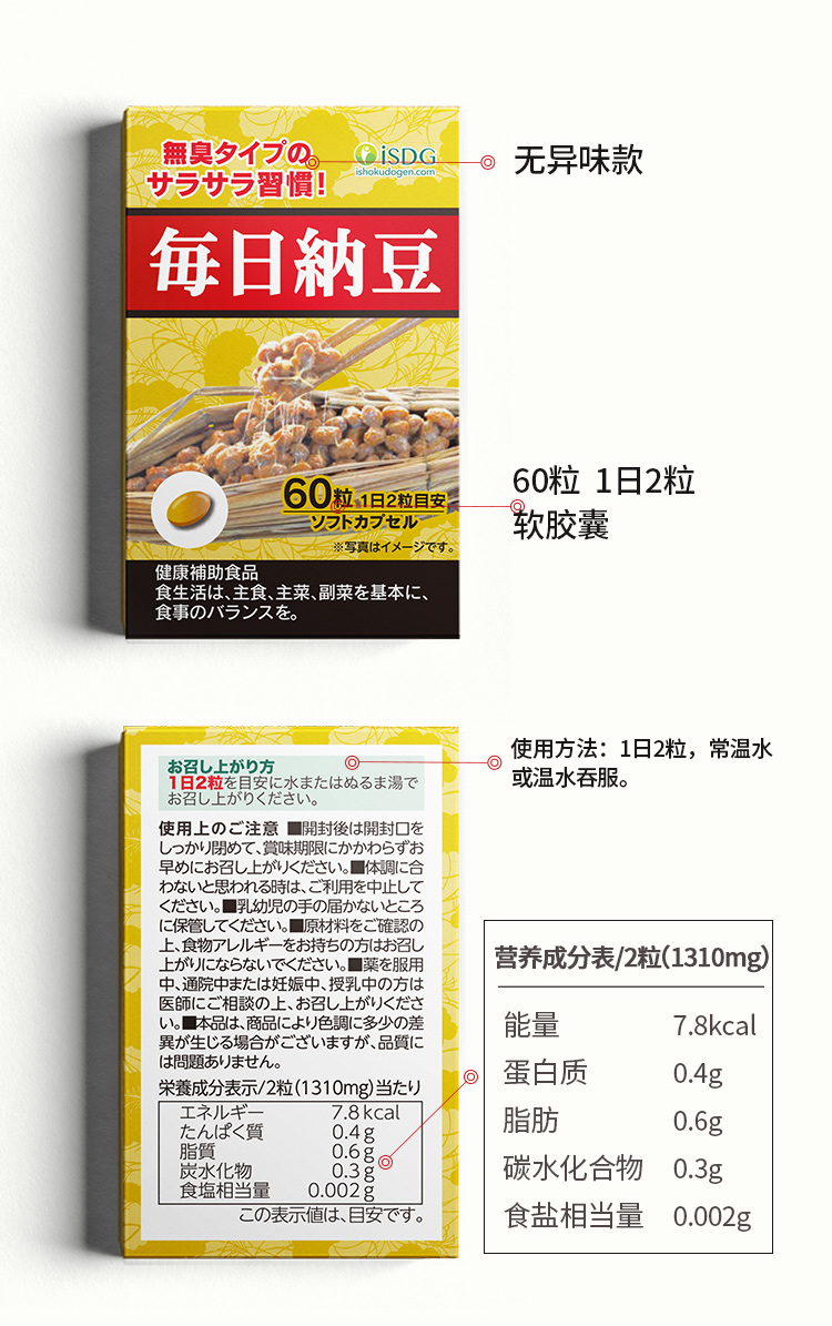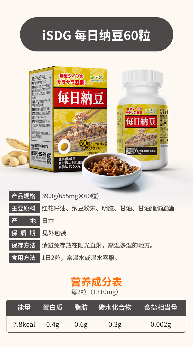 【先不上】【特卖】ISDG每日纳豆纳豆激酶胶囊60粒/盒【保质期:2026年11月 】