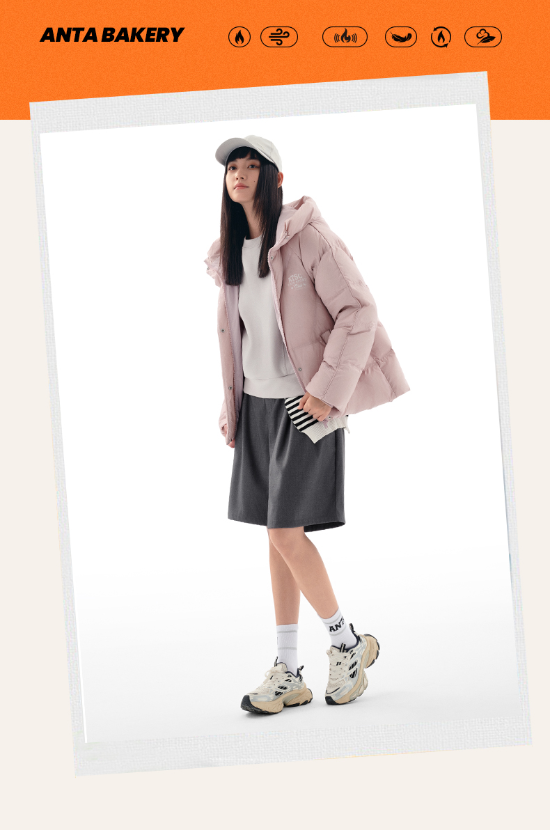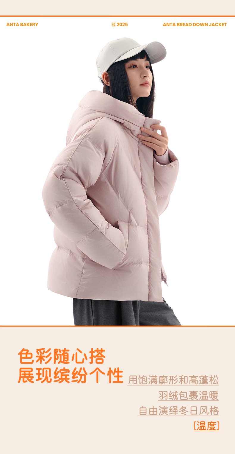 安踏多彩羽绒服丨防泼水女连帽保暖棉服冬季新款面包服162618906