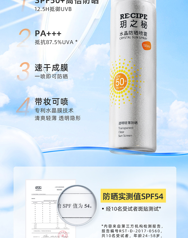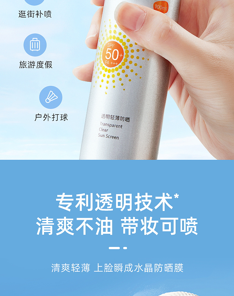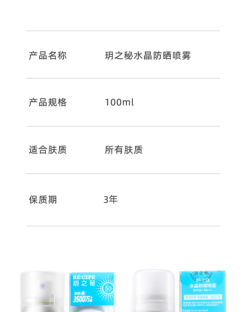 玥之秘水晶防晒喷雾SPF50+ PA++ + 100ml