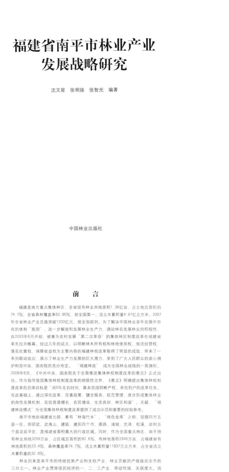 福建省南平林业发展战略研究 中国林业出版社