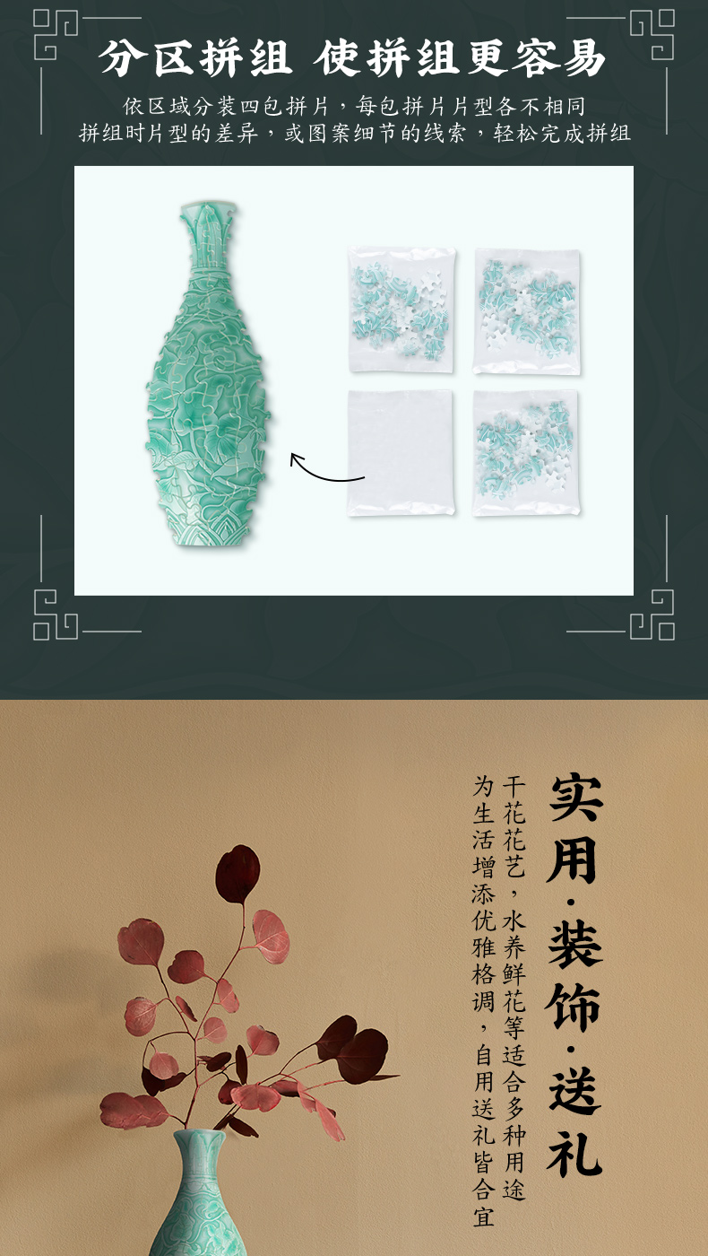 160片 花瓶拼图 S1036 艺术触感系列-青白釉浮雕花瓶
