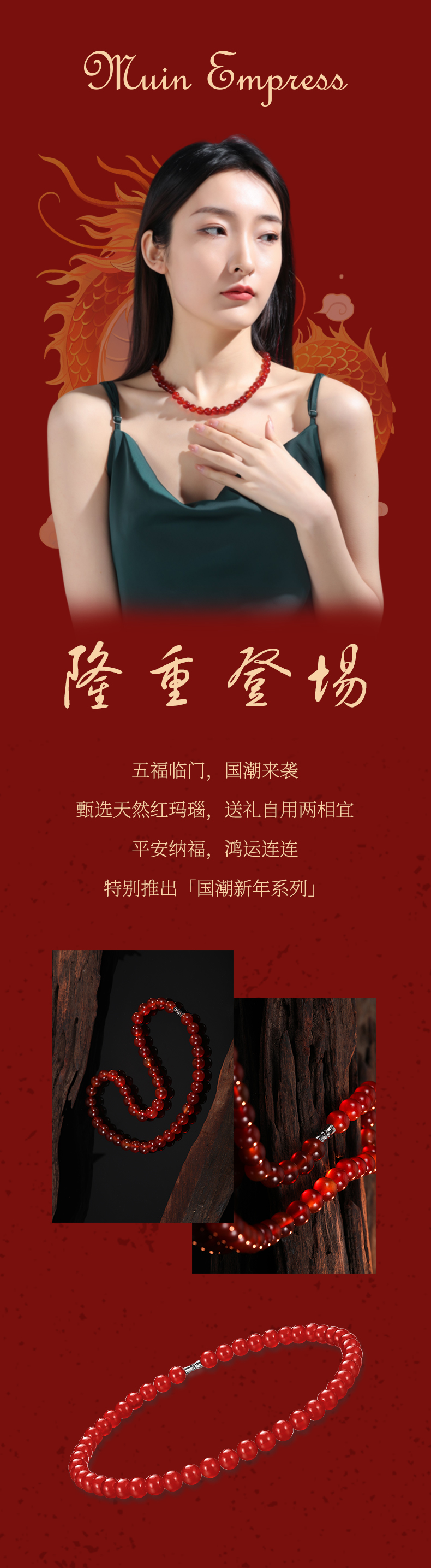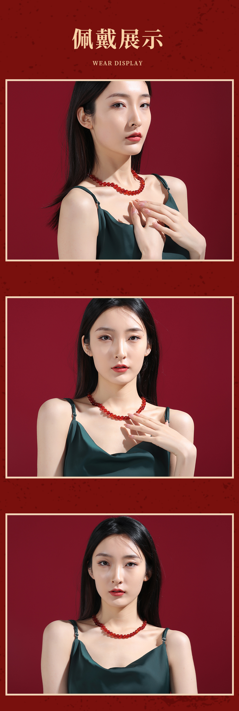 优选丨《八面玲珑》红玛瑙项链 珠子直径8mm/重量约42g