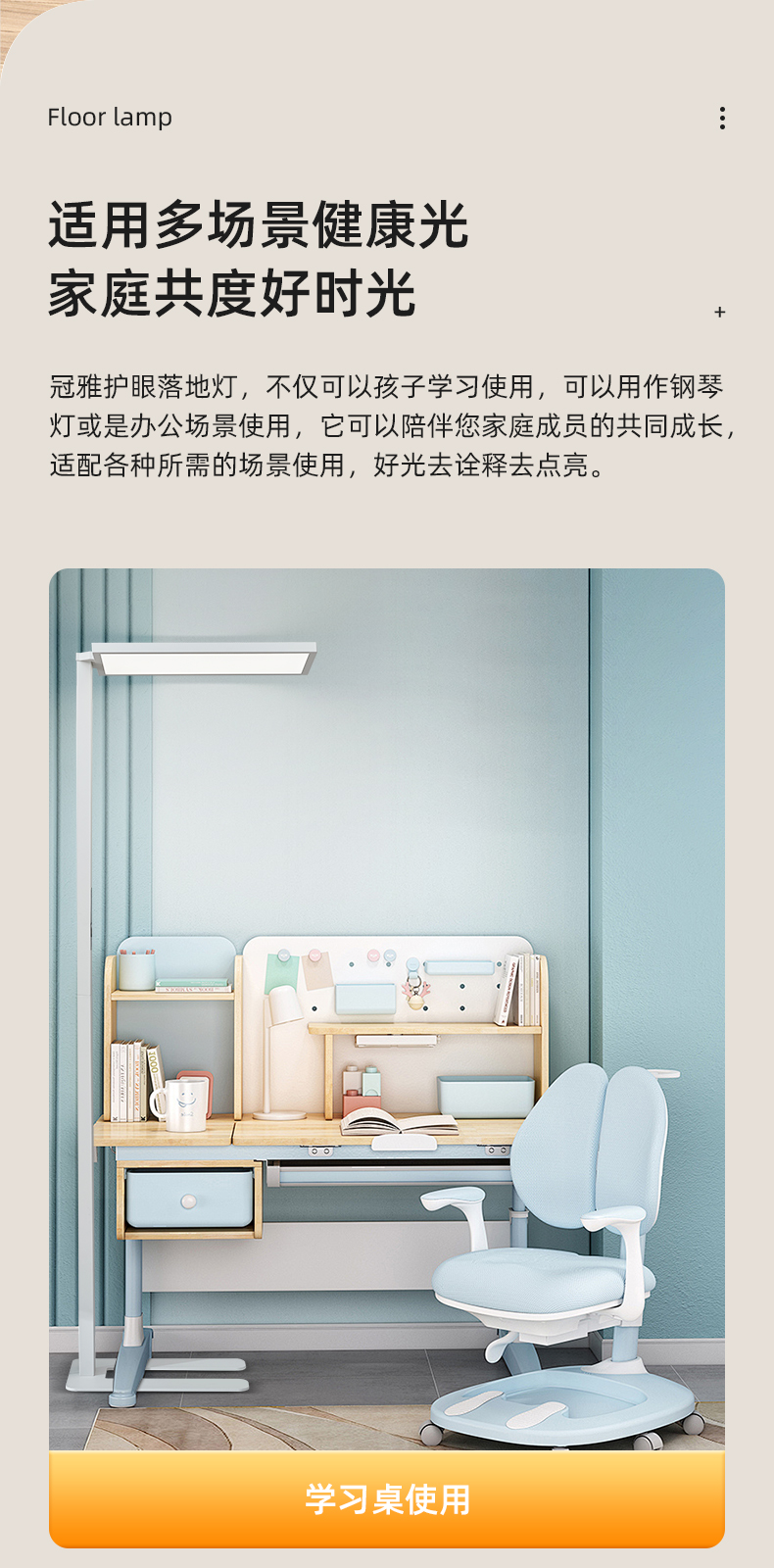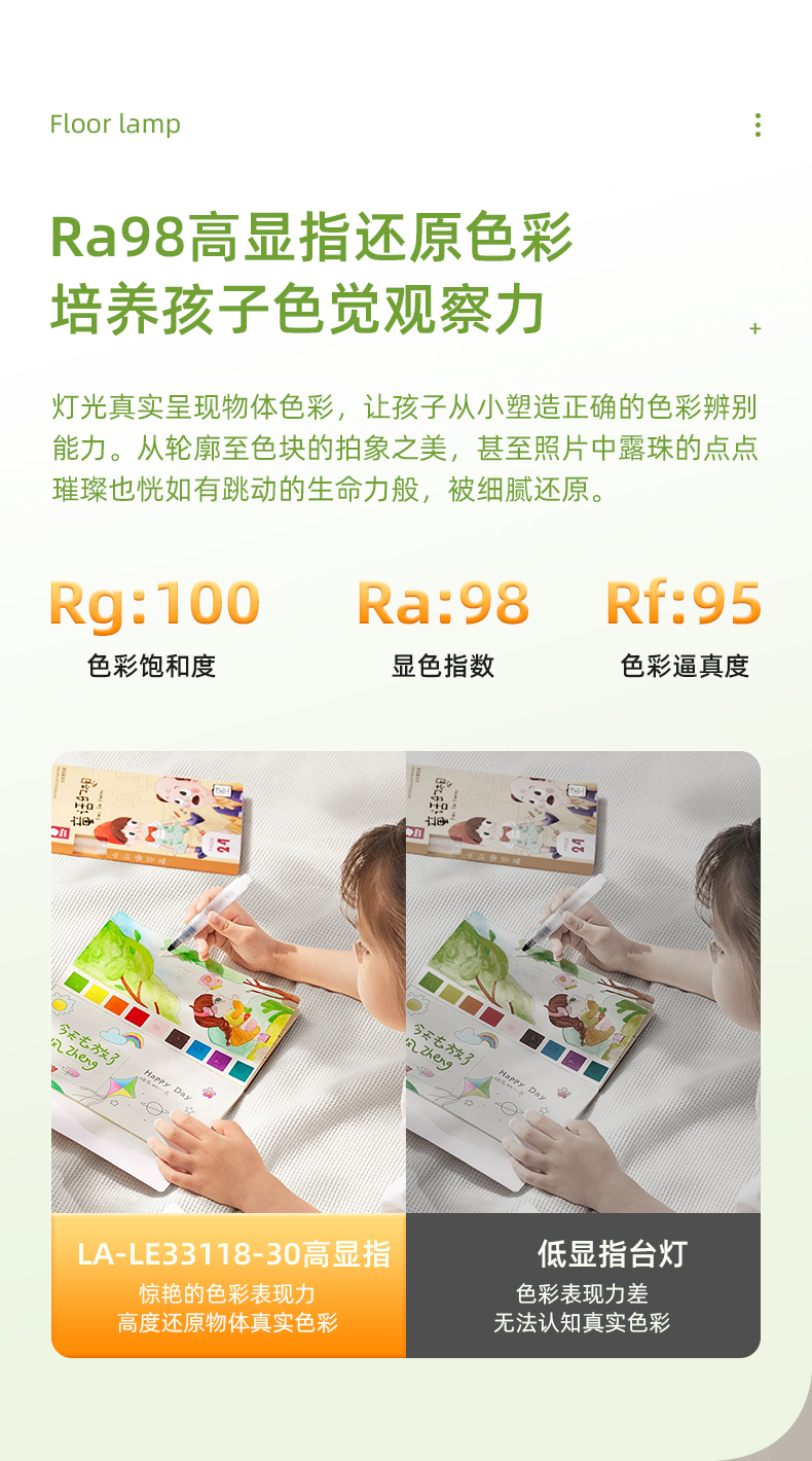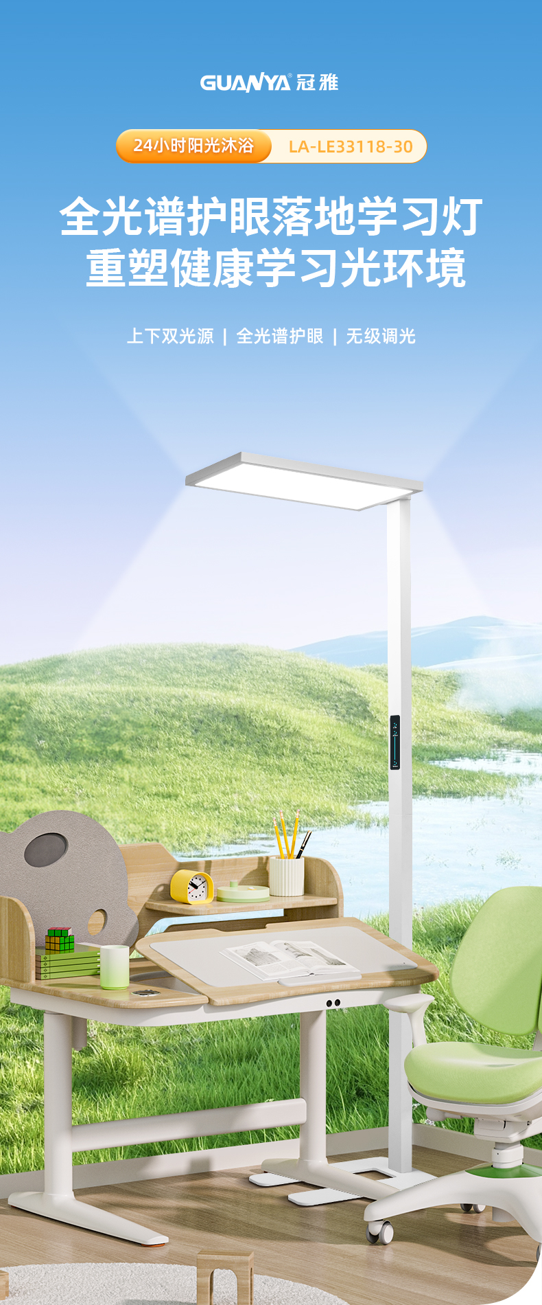【冠雅全光谱落地护眼灯】均匀出光,柔和舒适;专业护眼,舒适用眼。陪伴成长,一盏落地灯就够了!