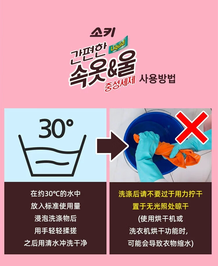 韩国进口芜琼花内衣内裤清洗剂羊毛衫白色衣袜去污洗衣液厨具多用途清洁剂 500ml/瓶