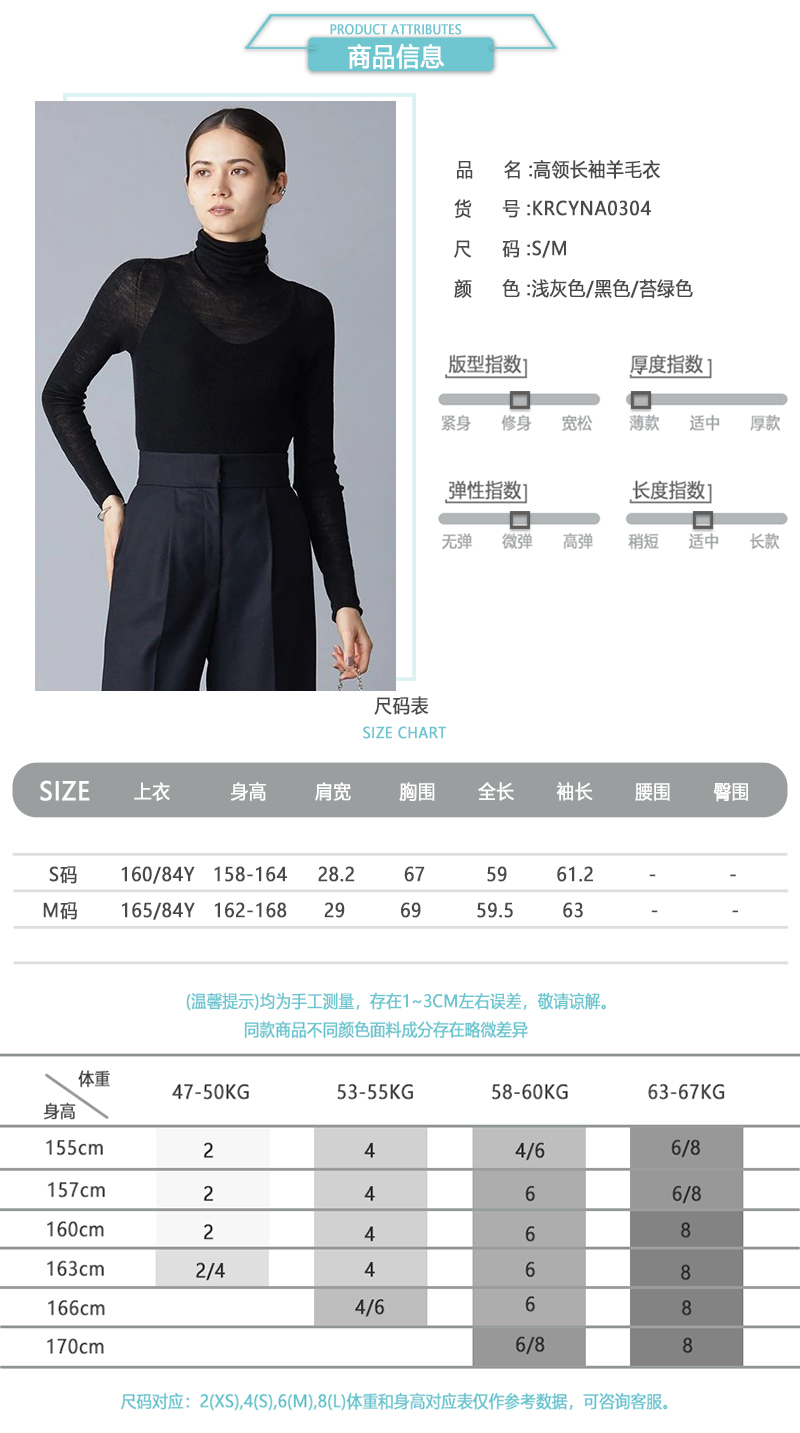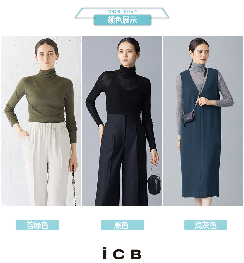 ICB日系春季通勤修身纯羊毛高领套头薄毛衣内搭针织毛衫商场同款