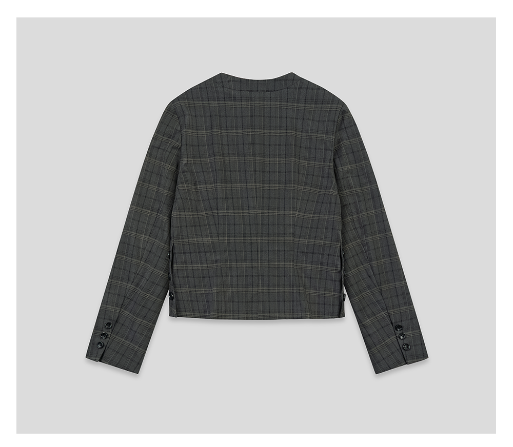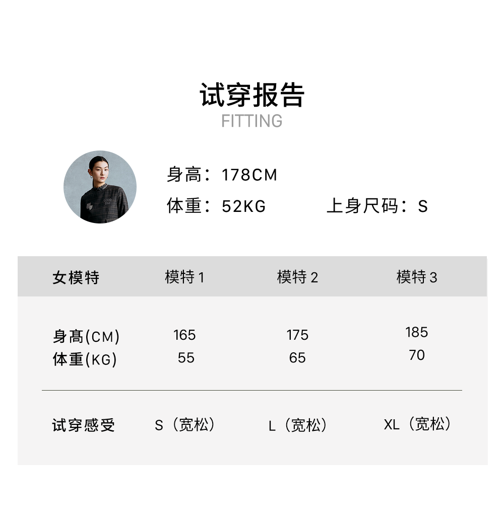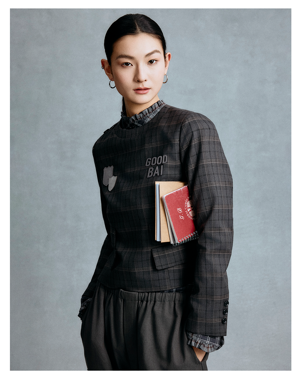 GOODBAI logo徽章剪影贴布绣格纹正肩圆领长袖上衣