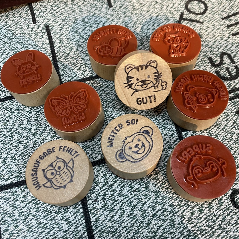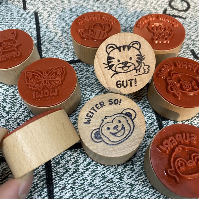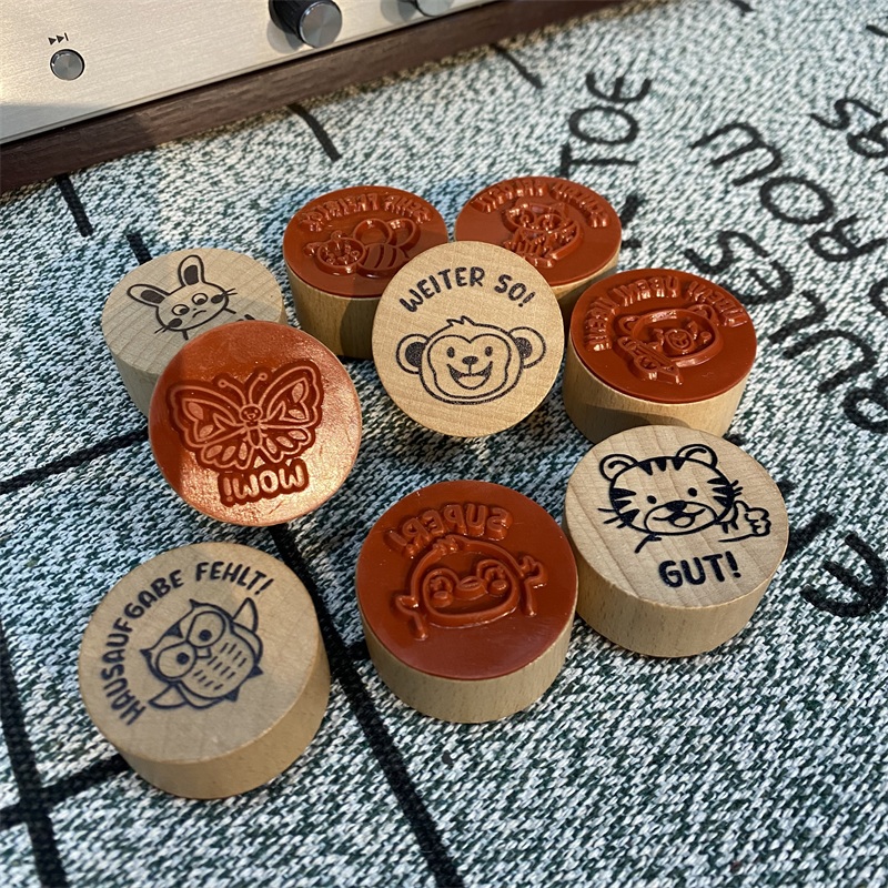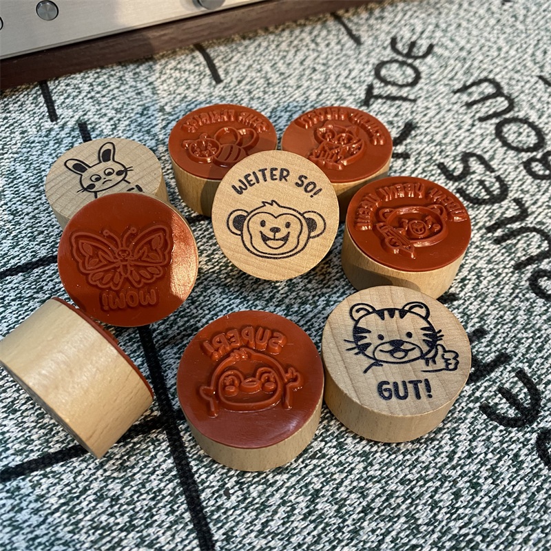 【9个装】动物卡通DIY木质圆形印章动物卡通 九种图案