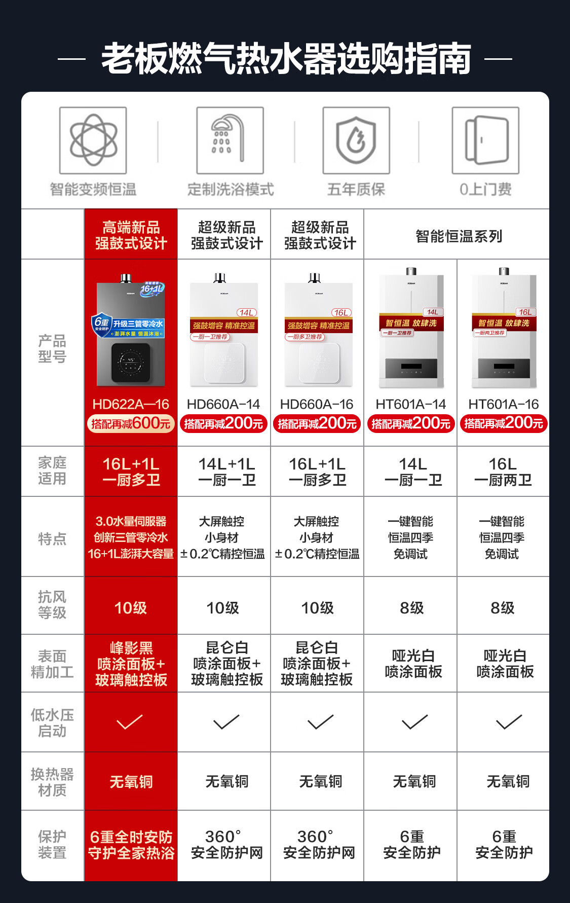 【新品】HT601A 14L恒温16L恒温老板燃气热水器天燃气壁挂炉天然气热水器燃气