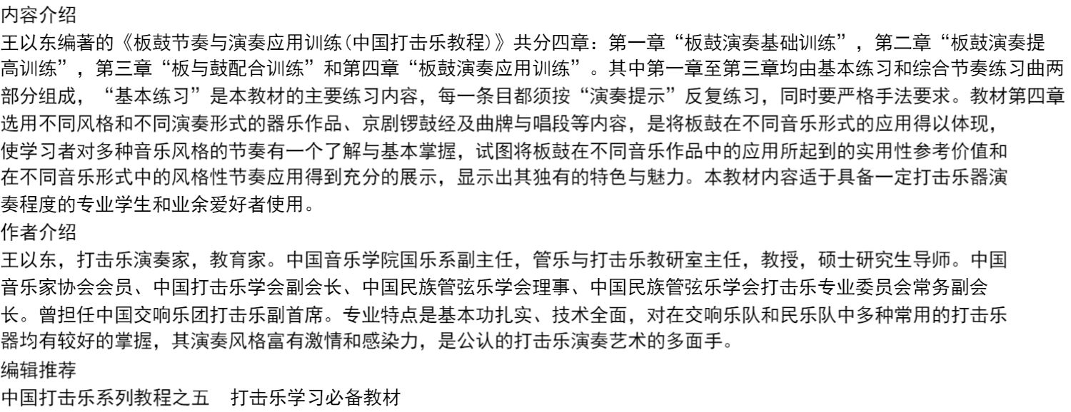板鼓节奏与演奏应用训练(中国打击乐教程)/中国音乐学院科研与教学系列丛书/高等艺术院校民族器乐教学书系