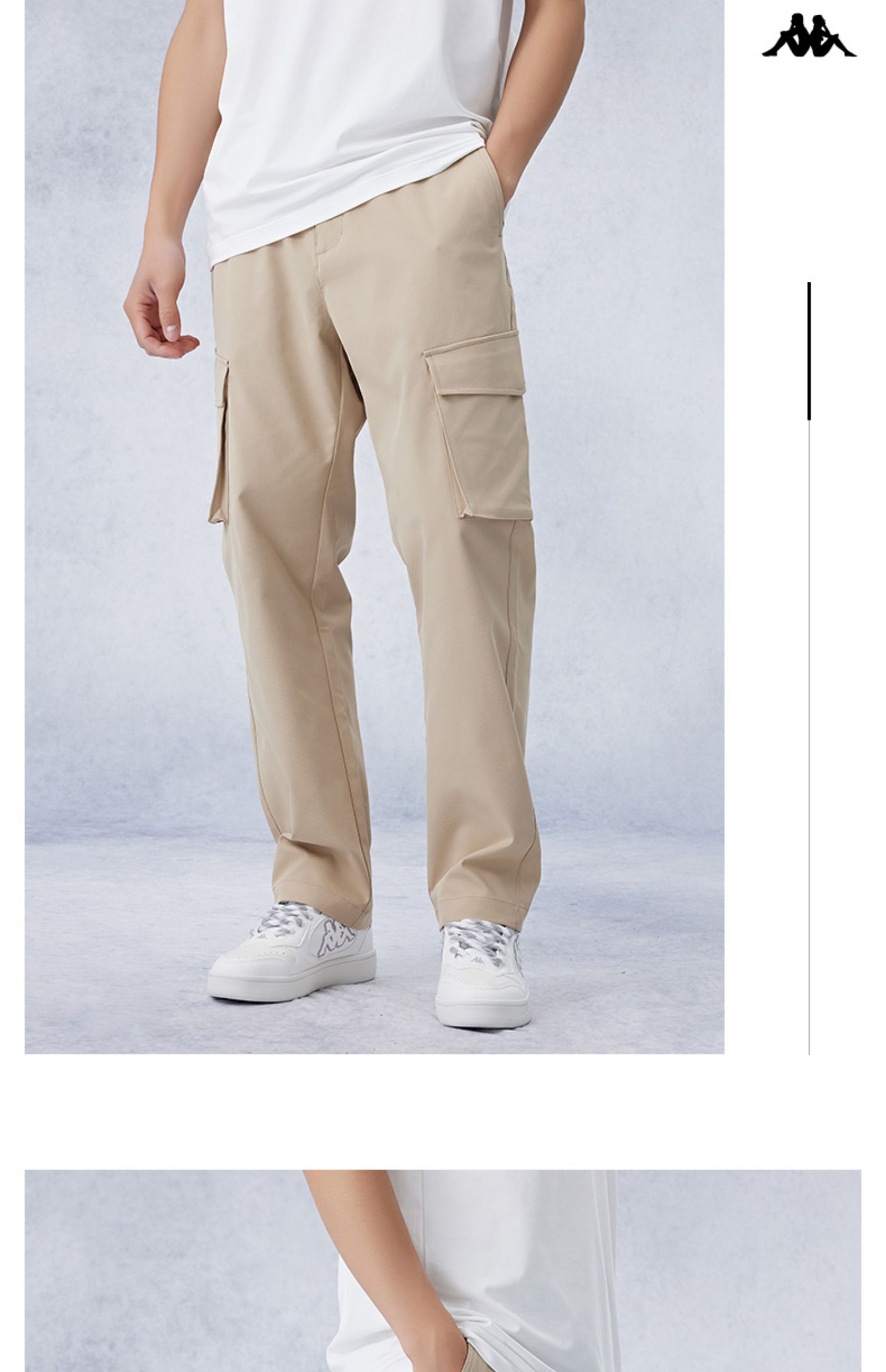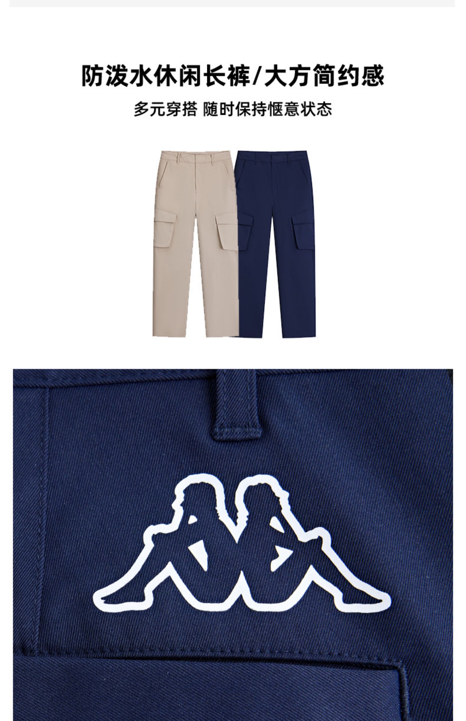 Kappa卡帕背靠背运动裤男款2024新款复古直筒休闲裤防泼水工装裤K0E52AX01