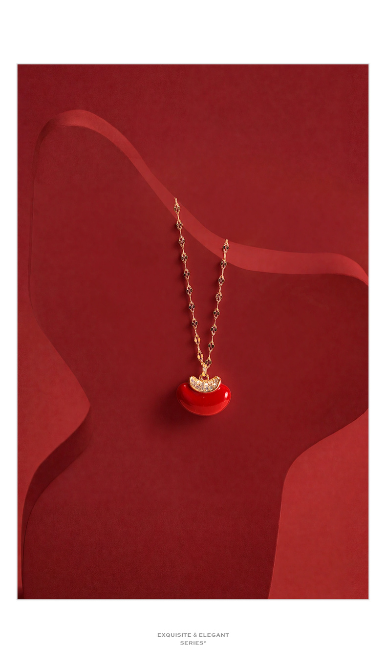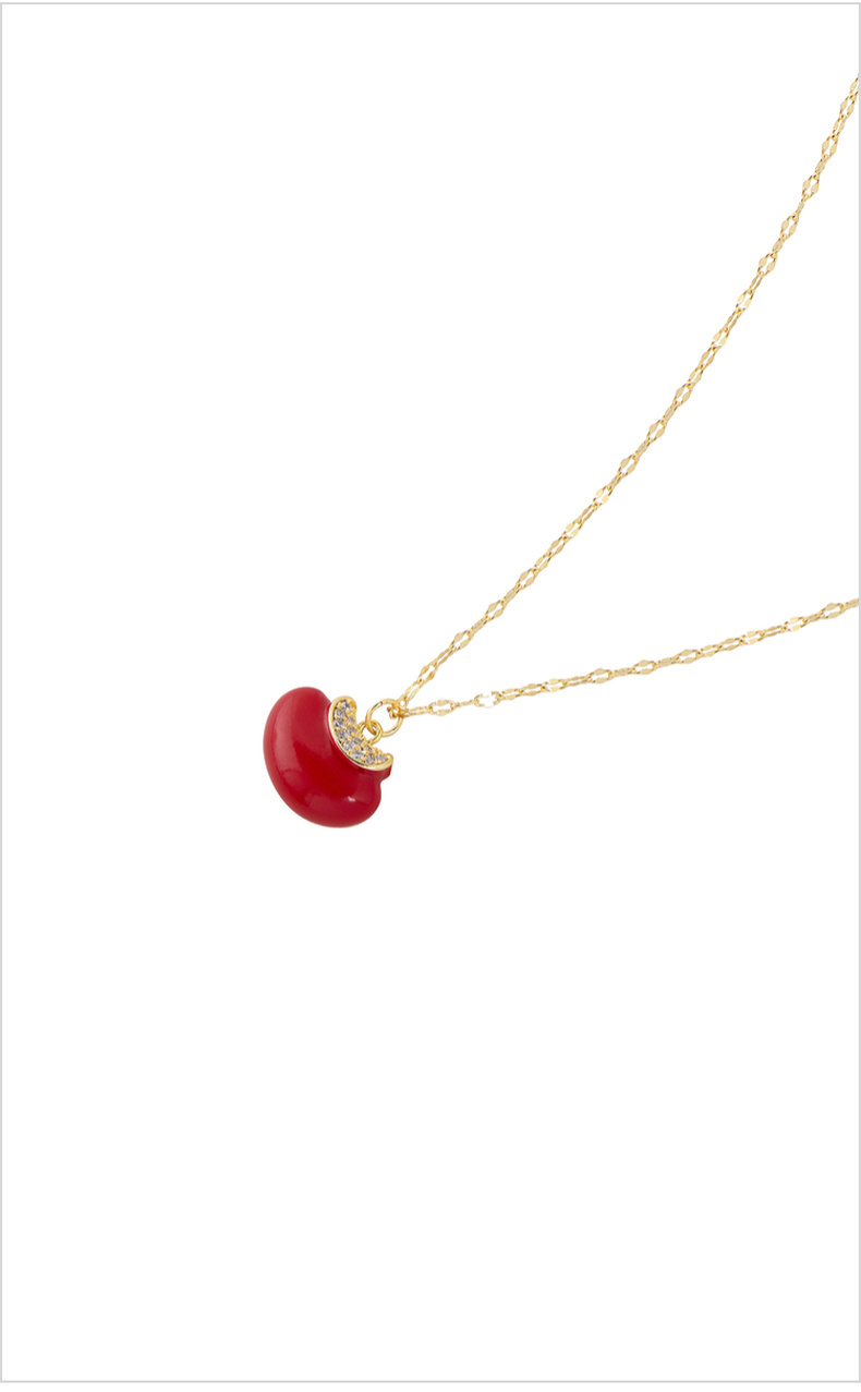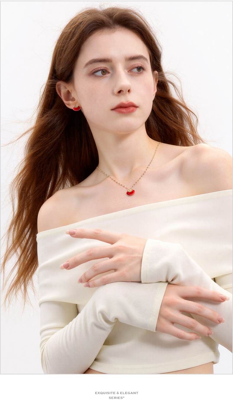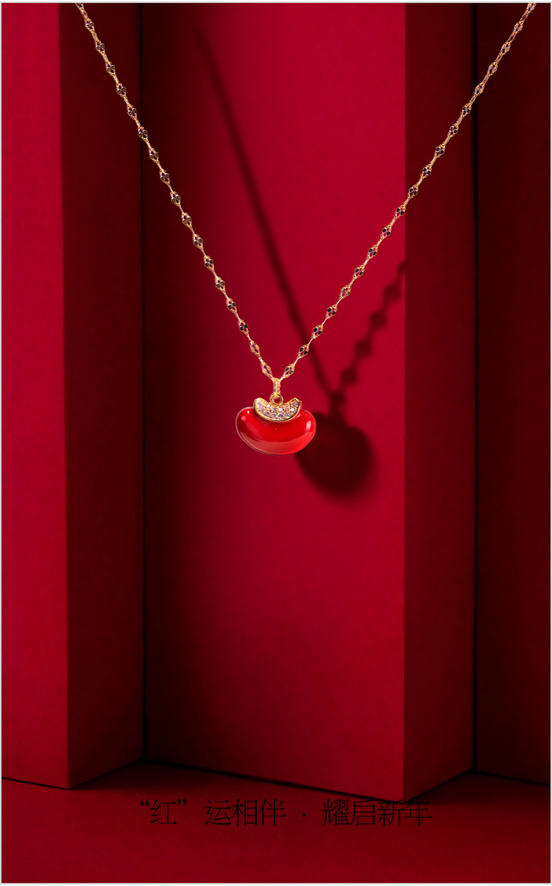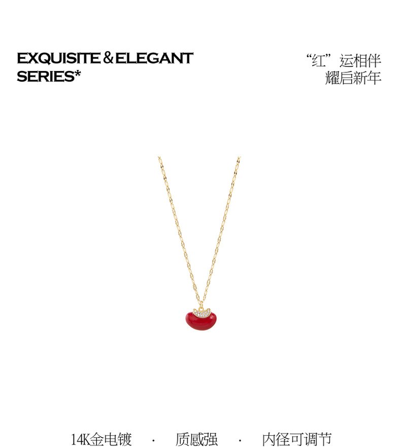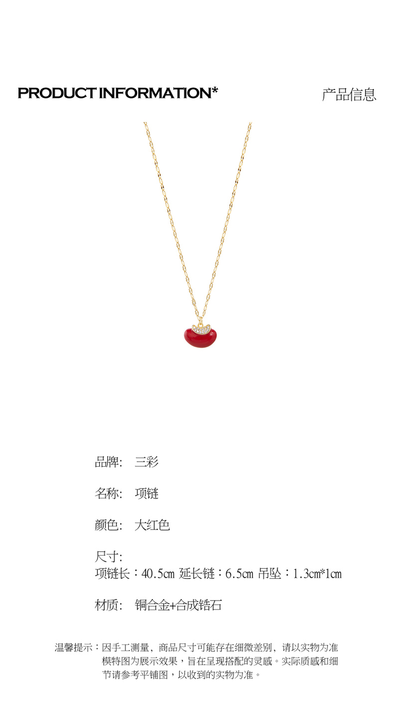 三彩2026新款相思红豆镶锆石吊坠项链轻奢简约灵动甜美国风节日