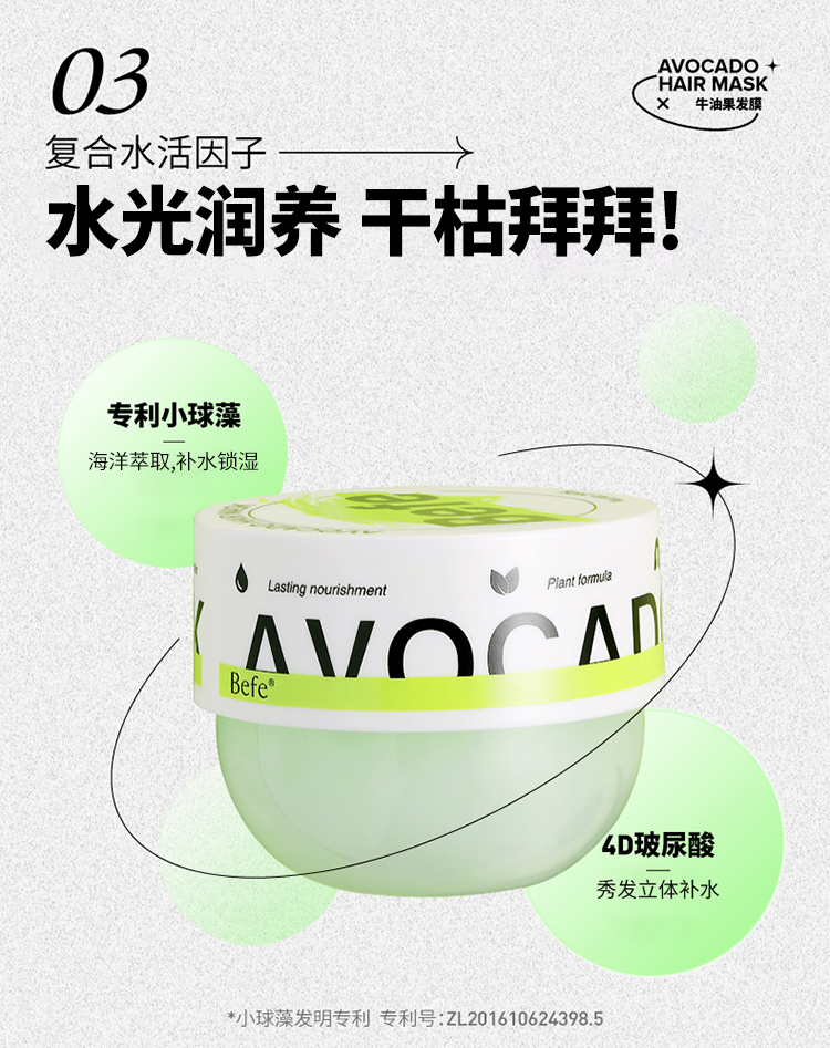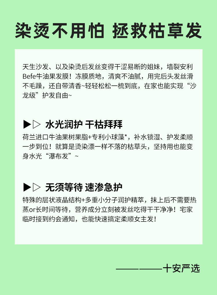 Befe牛油果发膜修护干枯补水可改善毛躁烫染受损滋养护发素