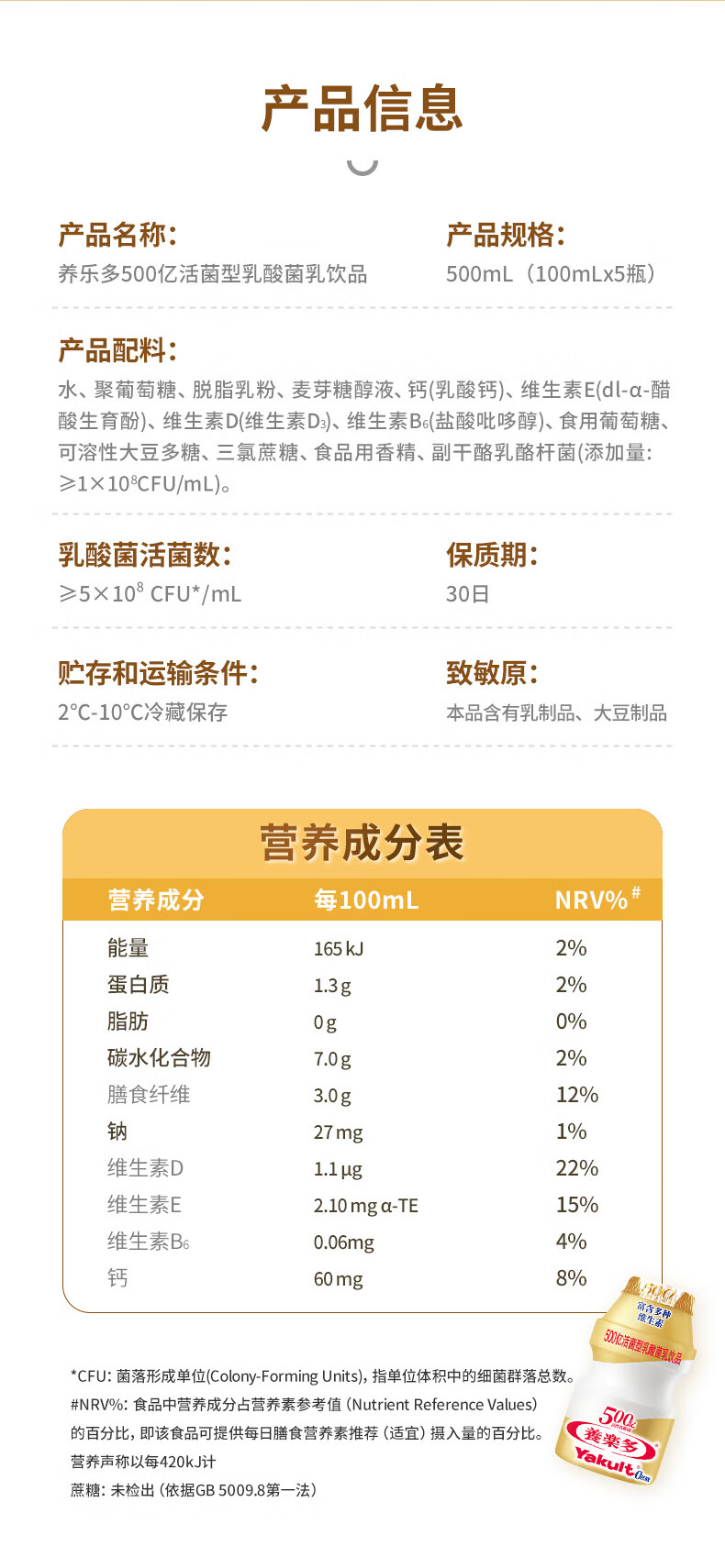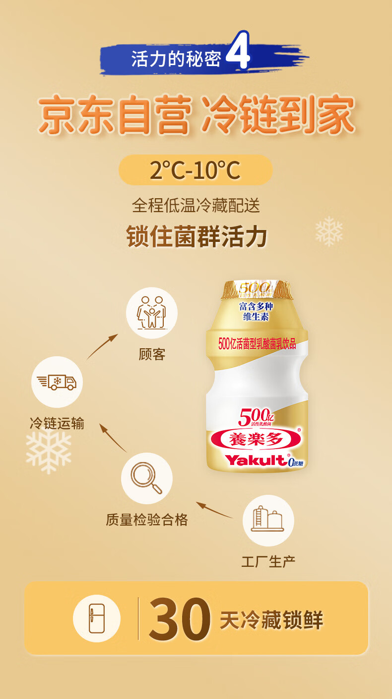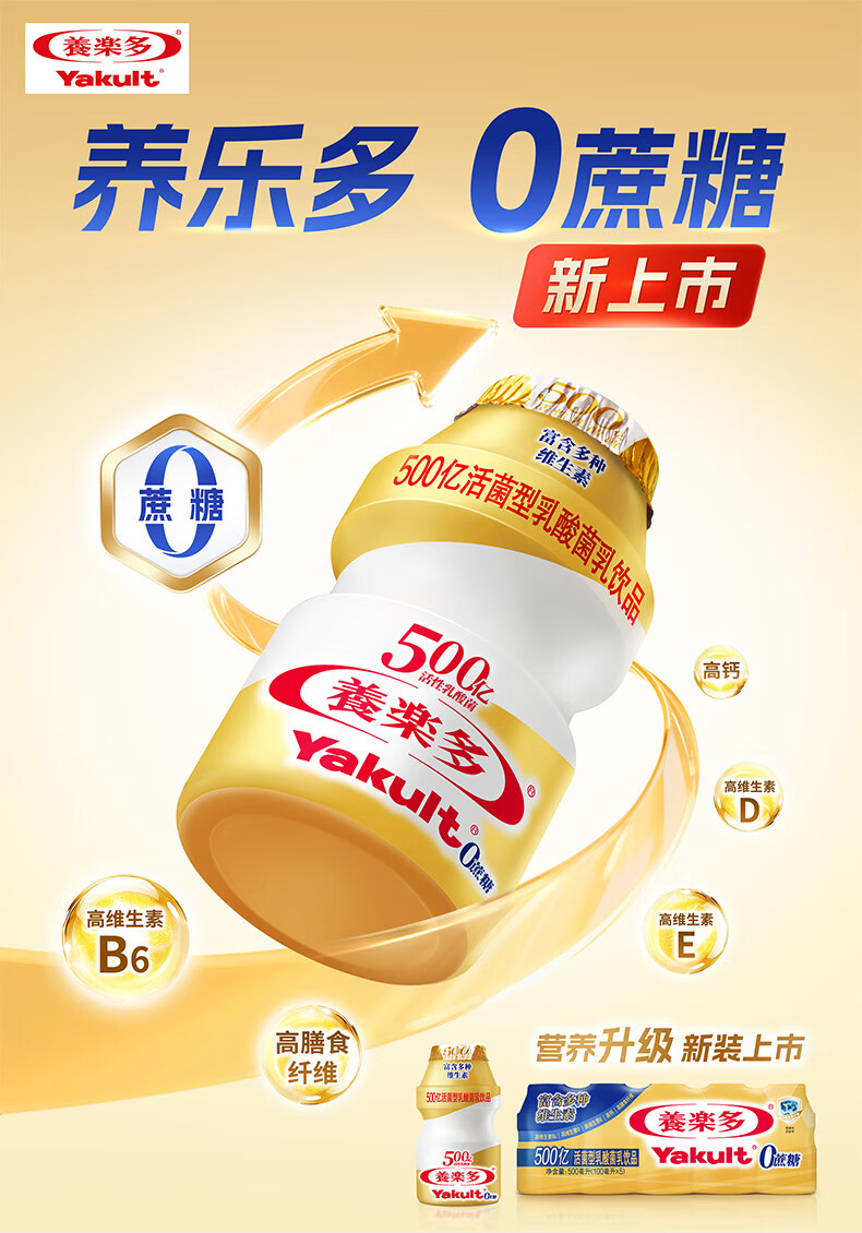 养乐多500亿活菌型乳酸菌乳饮品0蔗糖乳酸菌饮料 金瓶100ml*5瓶*4
