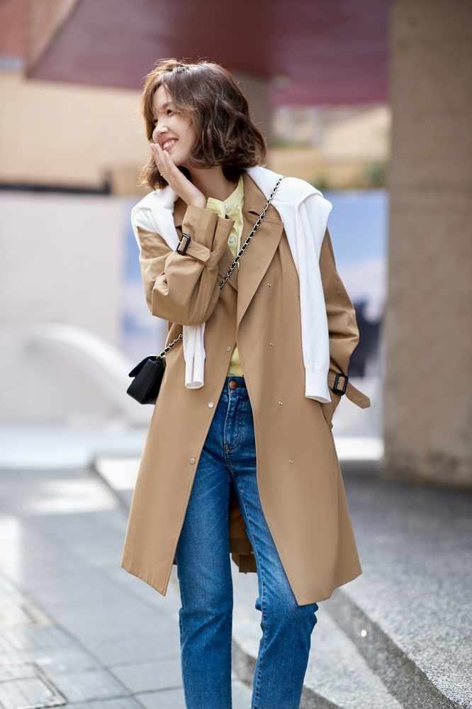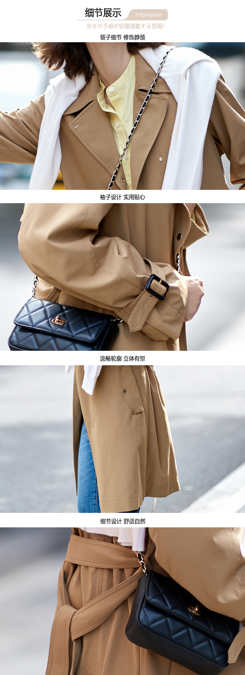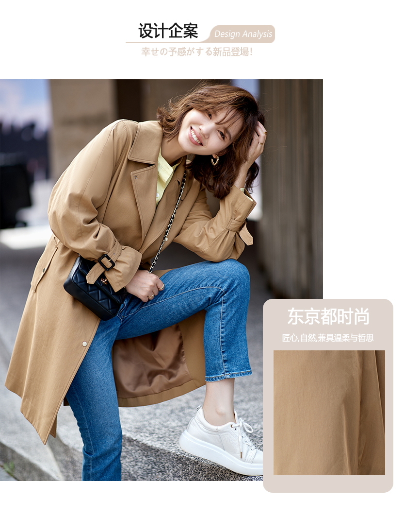 23区日系春季通勤宽松版棉混纺中长款风衣一手长外套商场同款