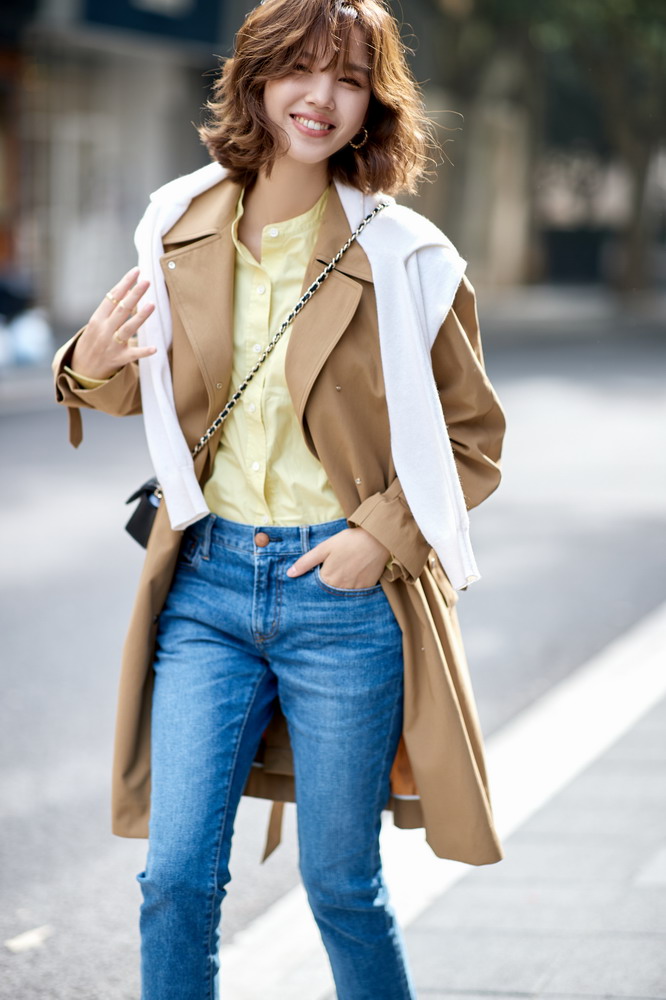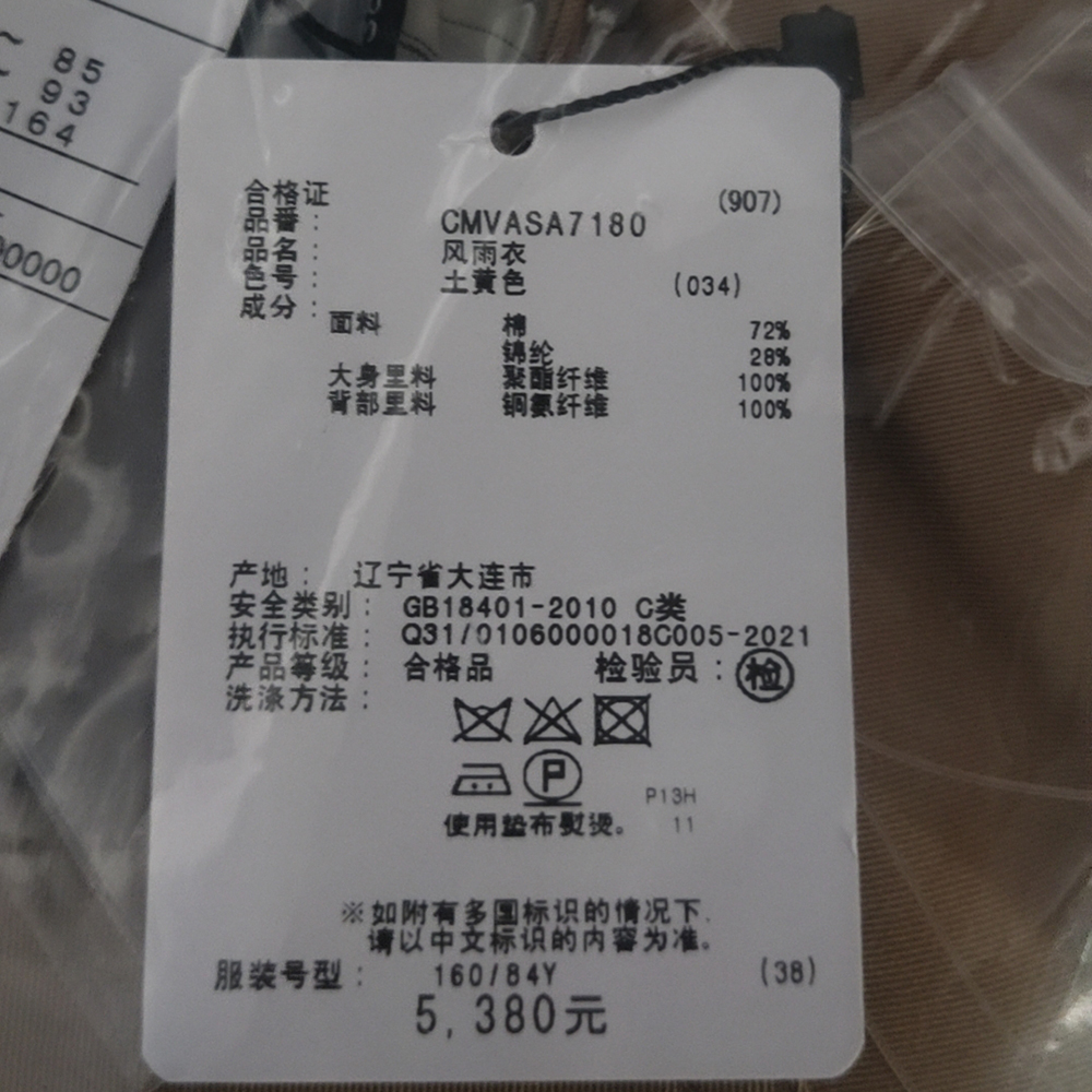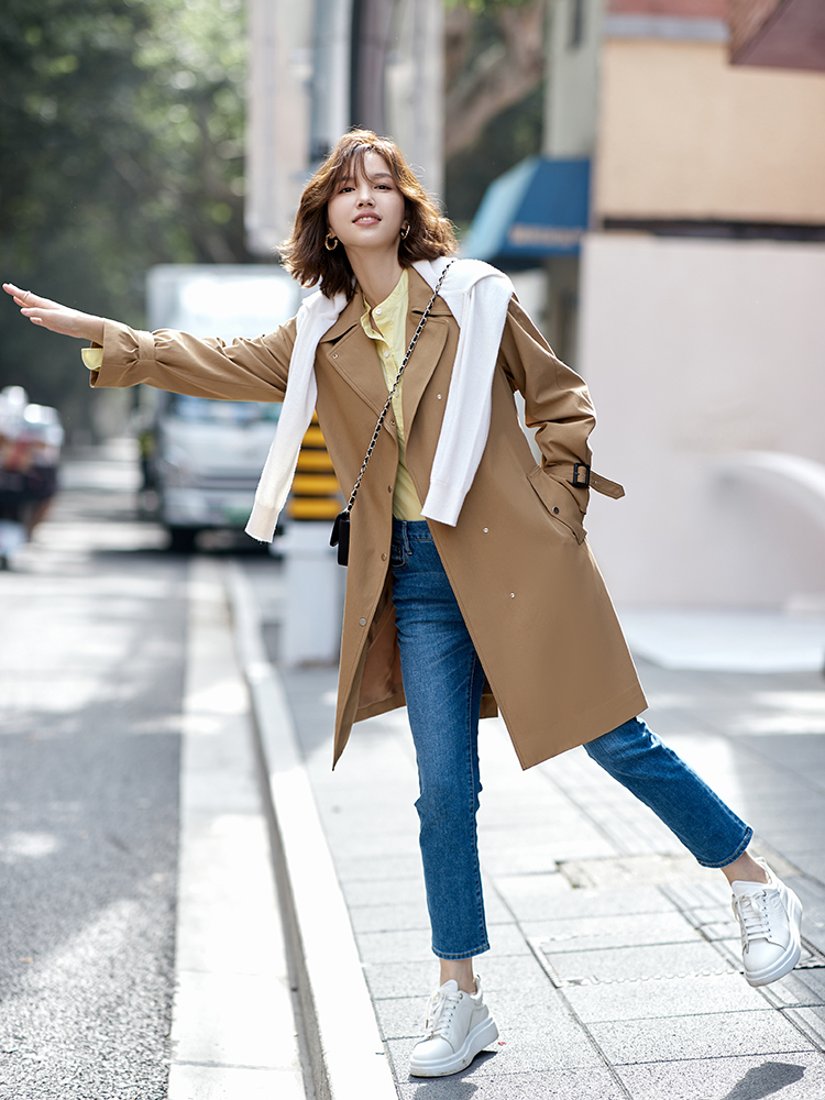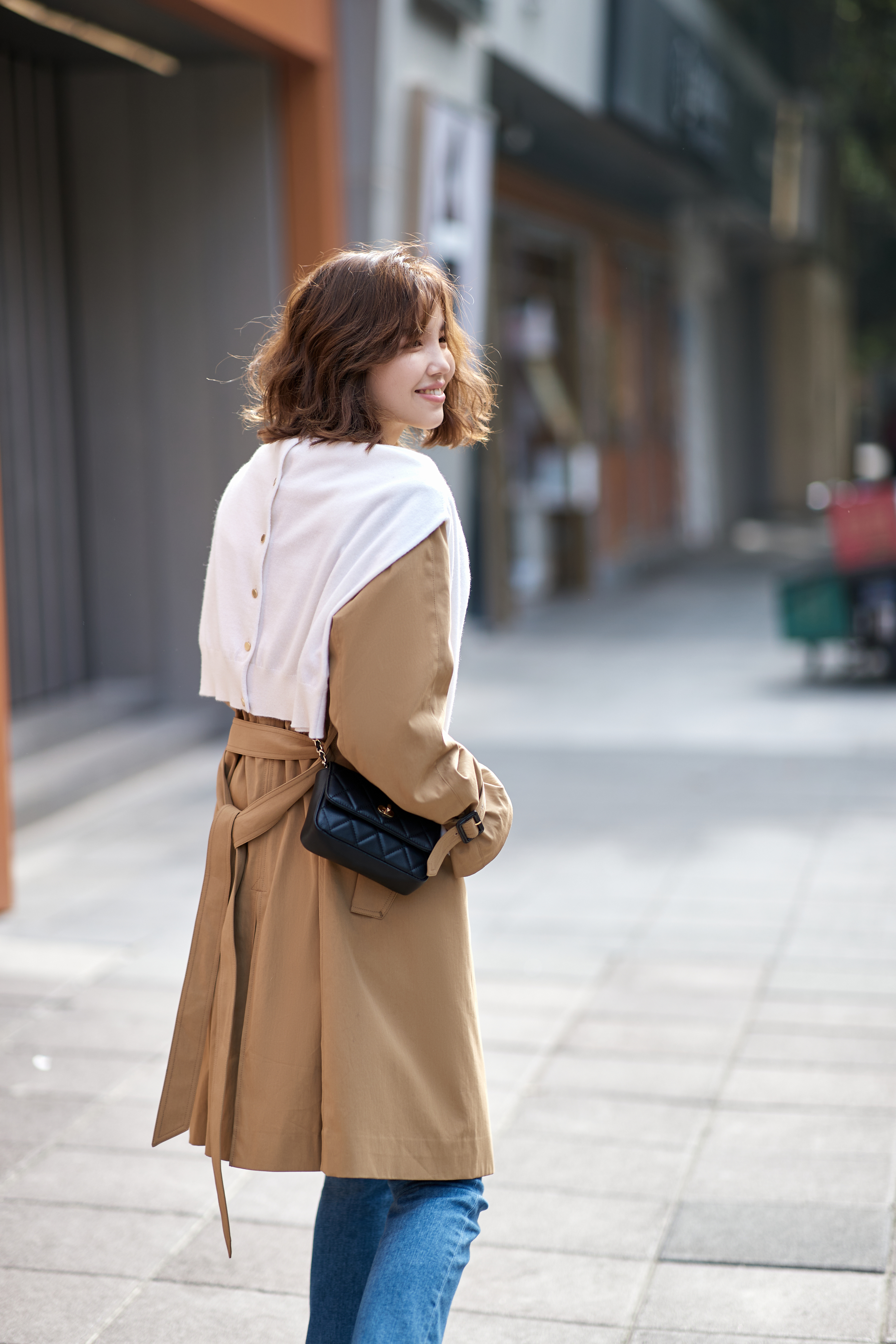 23区日系春季通勤宽松版棉混纺中长款风衣一手长外套商场同款