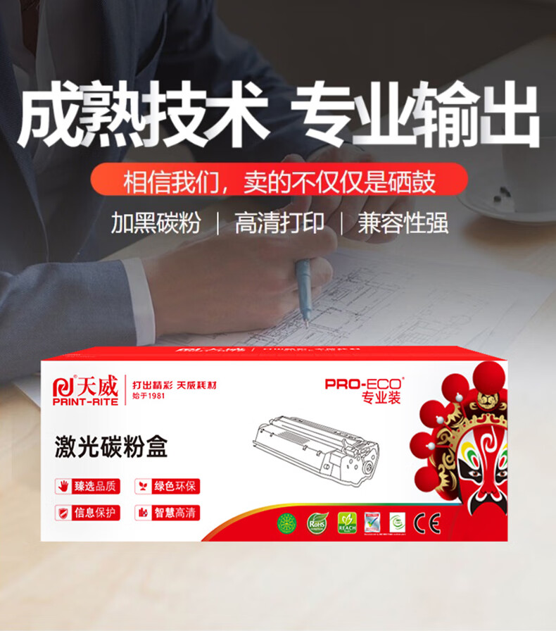 - 天威耗材始于1981年,主营硒鼓、墨盒、色带等办公耗材商品,中国知名通用打印耗材倡导者和生产商。