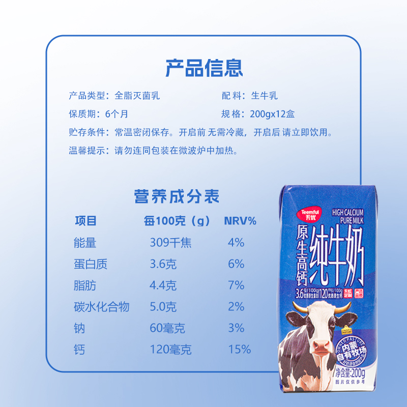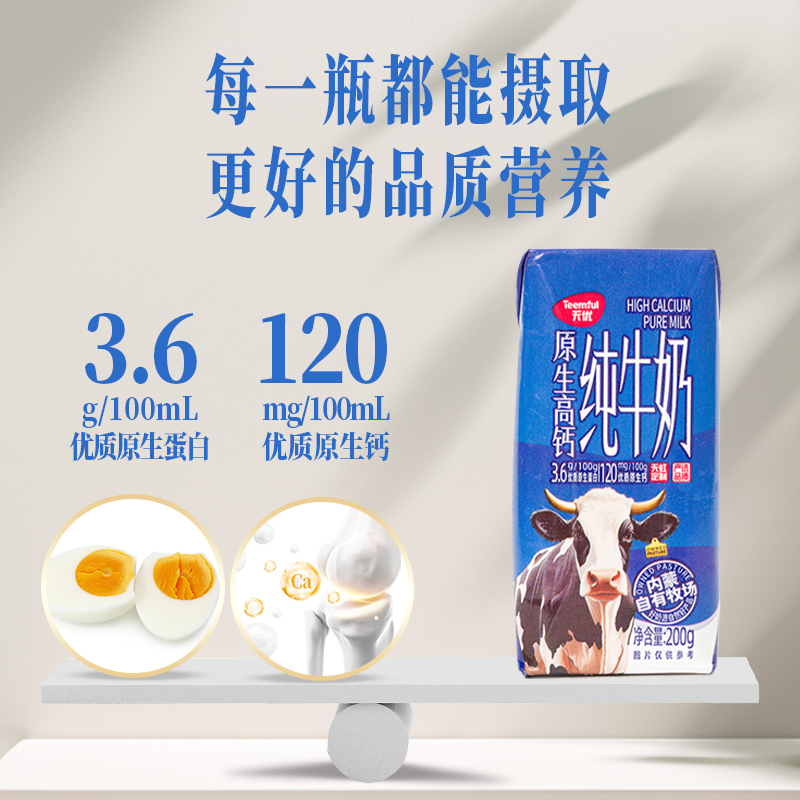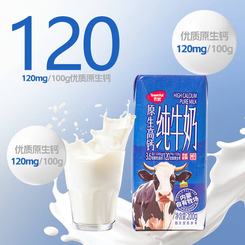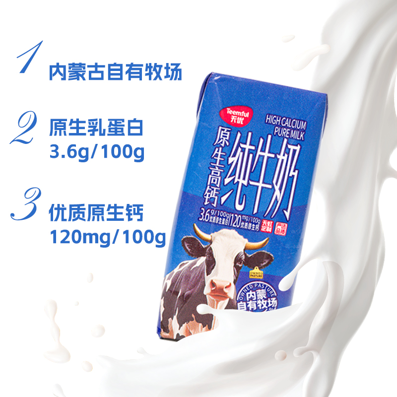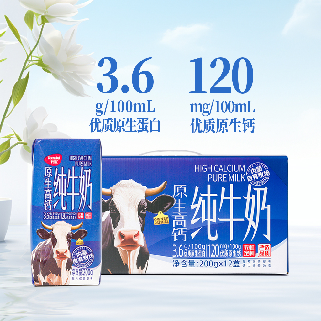 【天优】原生高钙纯牛奶200mL*12盒*5提-6月23日到期