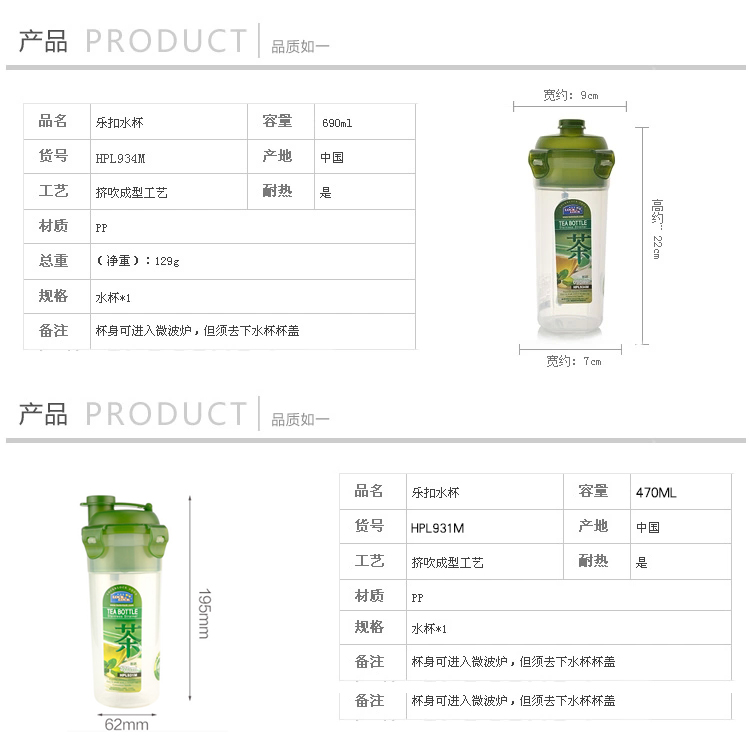 乐扣乐扣塑料水杯 HPL931H
