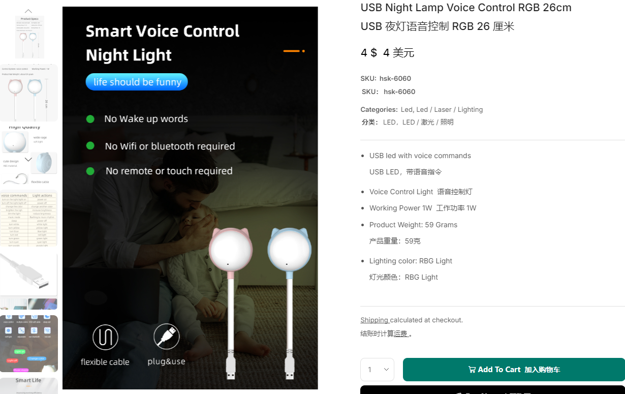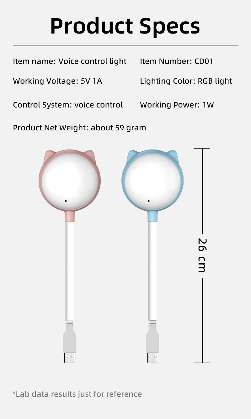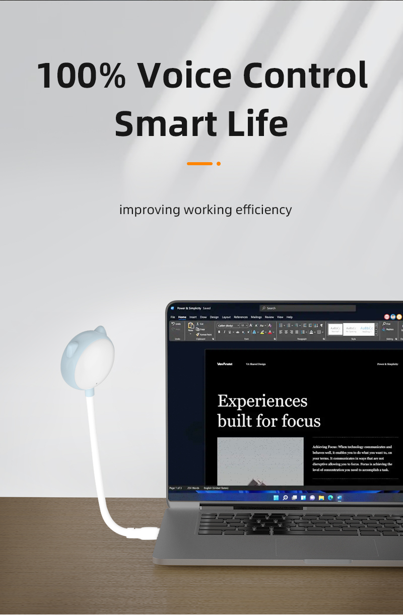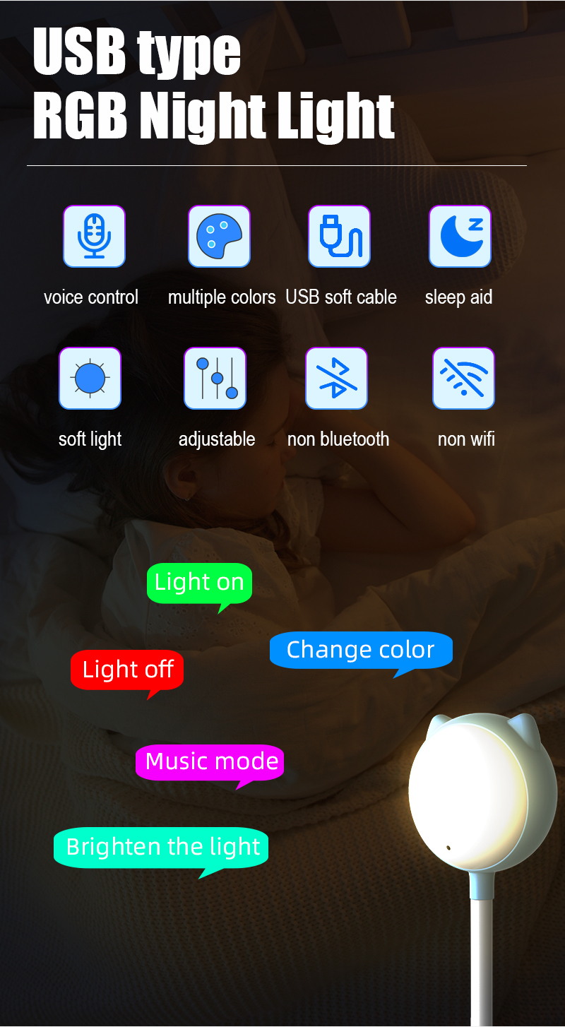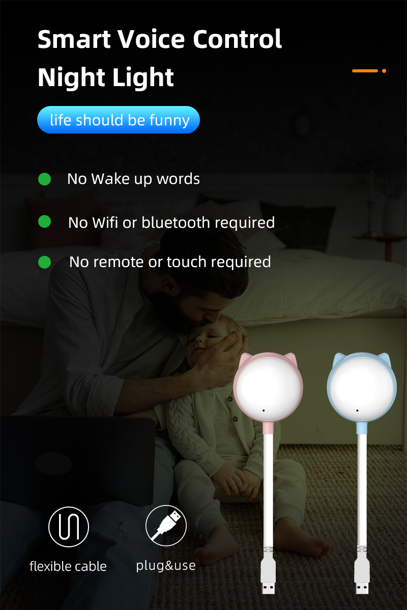 USB语音智能灯 多色转换柔光灯源 语音操控小夜灯 三档亮度