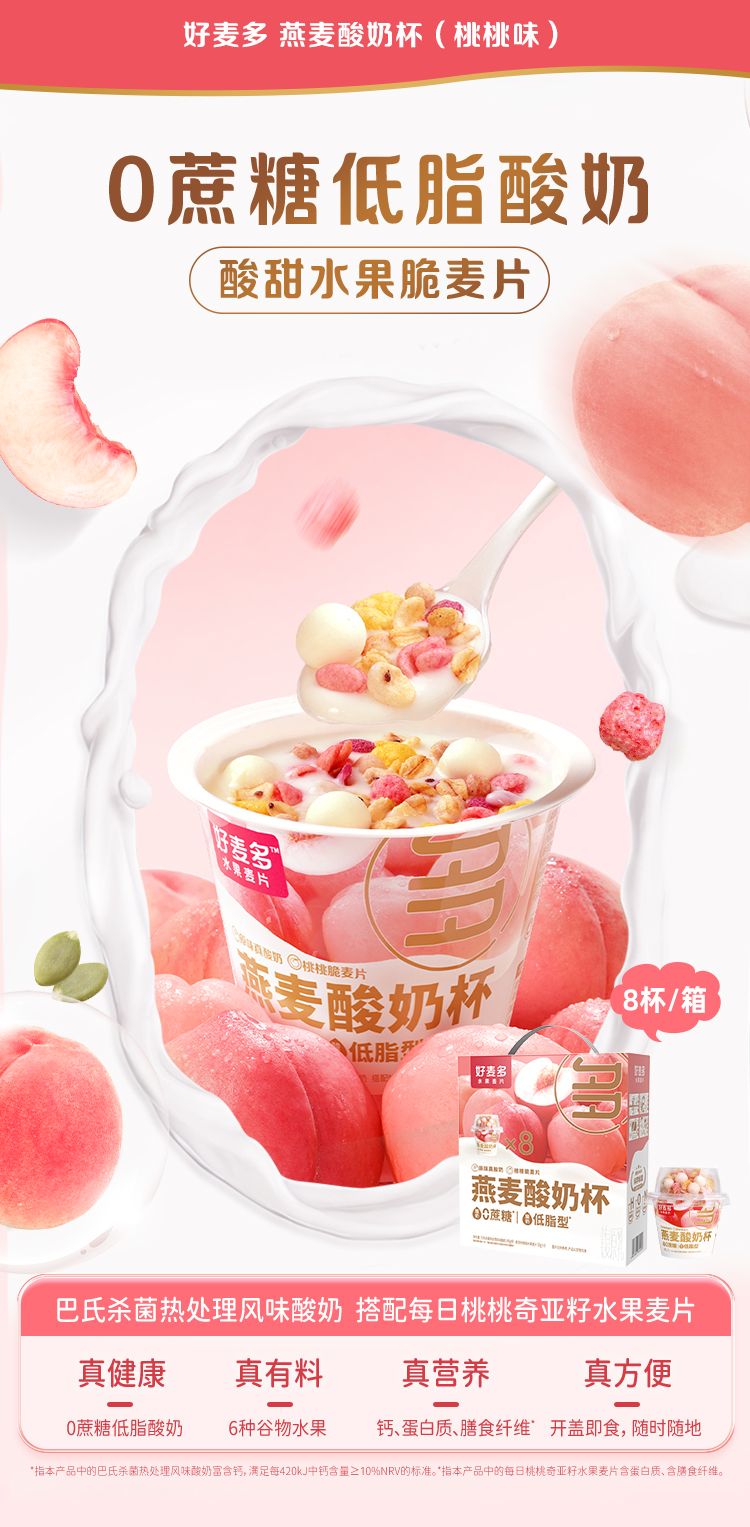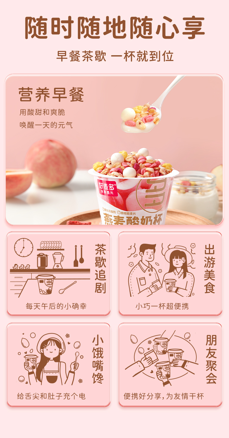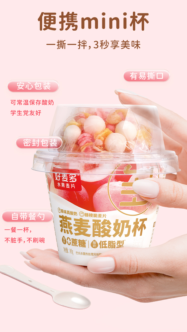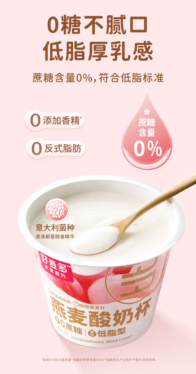 【好麦多】0蔗糖每日桃桃燕麦酸奶杯1320g