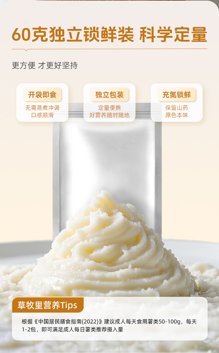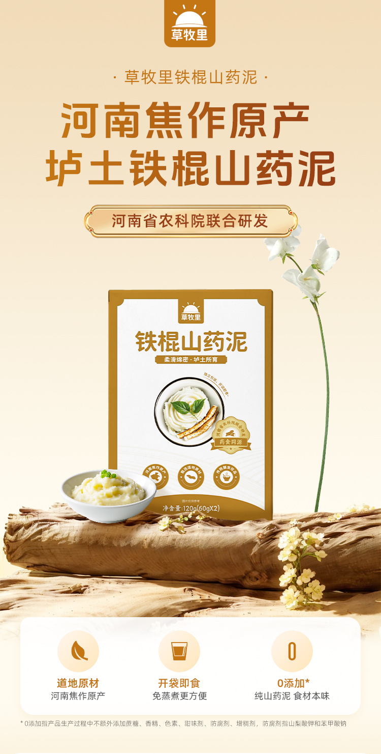 【临期 26年2月23日到期】【纯山药泥】草牧里 铁棍山药泥 60*2/盒 口感细腻绵软营养更易吸收