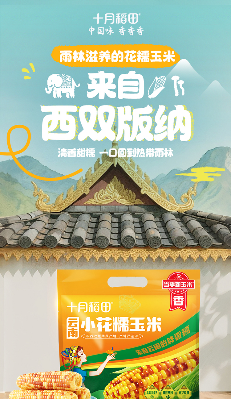 【西双版纳直采】十月稻田 云南小花糯玉米1.2kg(约6-7根)当季新玉米